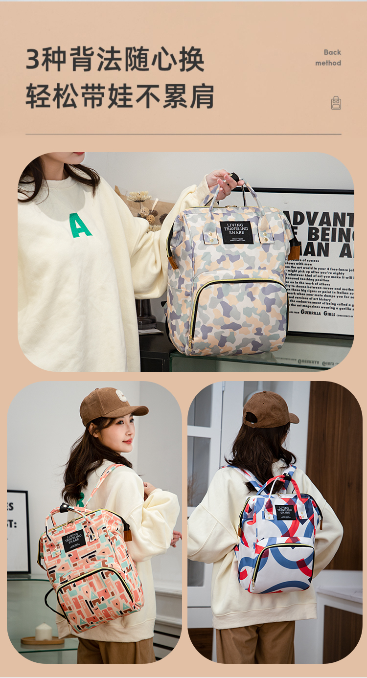 outdoor baby diaper bag trendy handbag new mummy bag lightweight waterproof nylon cloth large capacity mom bag