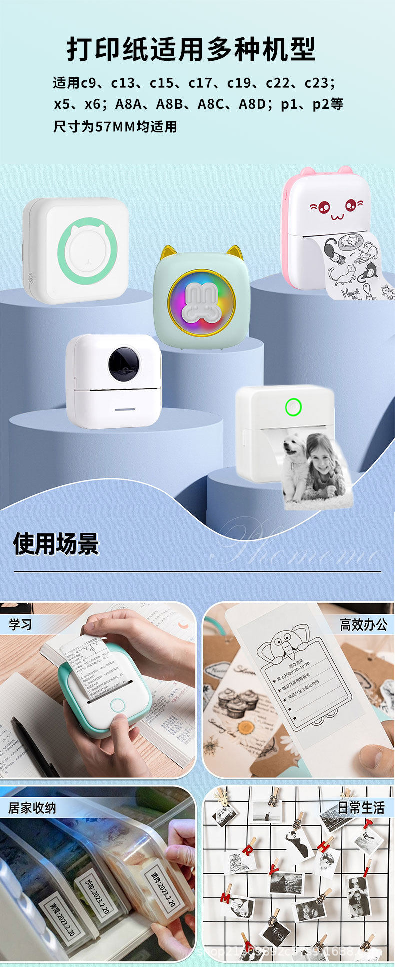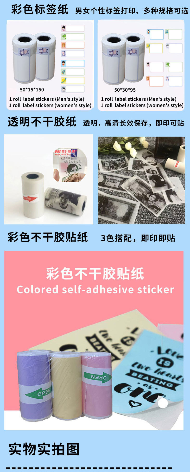 cross-border small printer paper 10-year label color adhesive sticker transparent mini printer paper