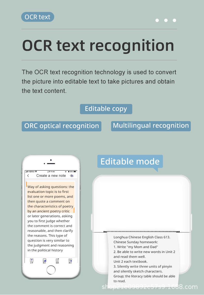 connection method: Bluetooth wireless ink-free black and white printing