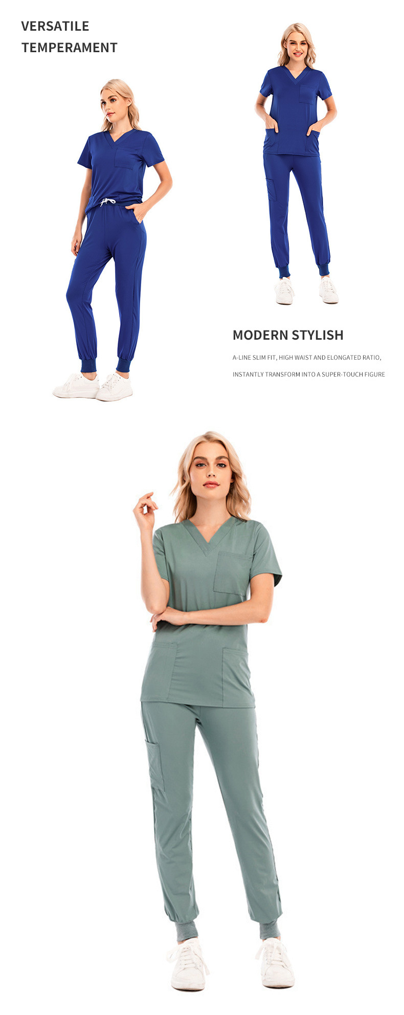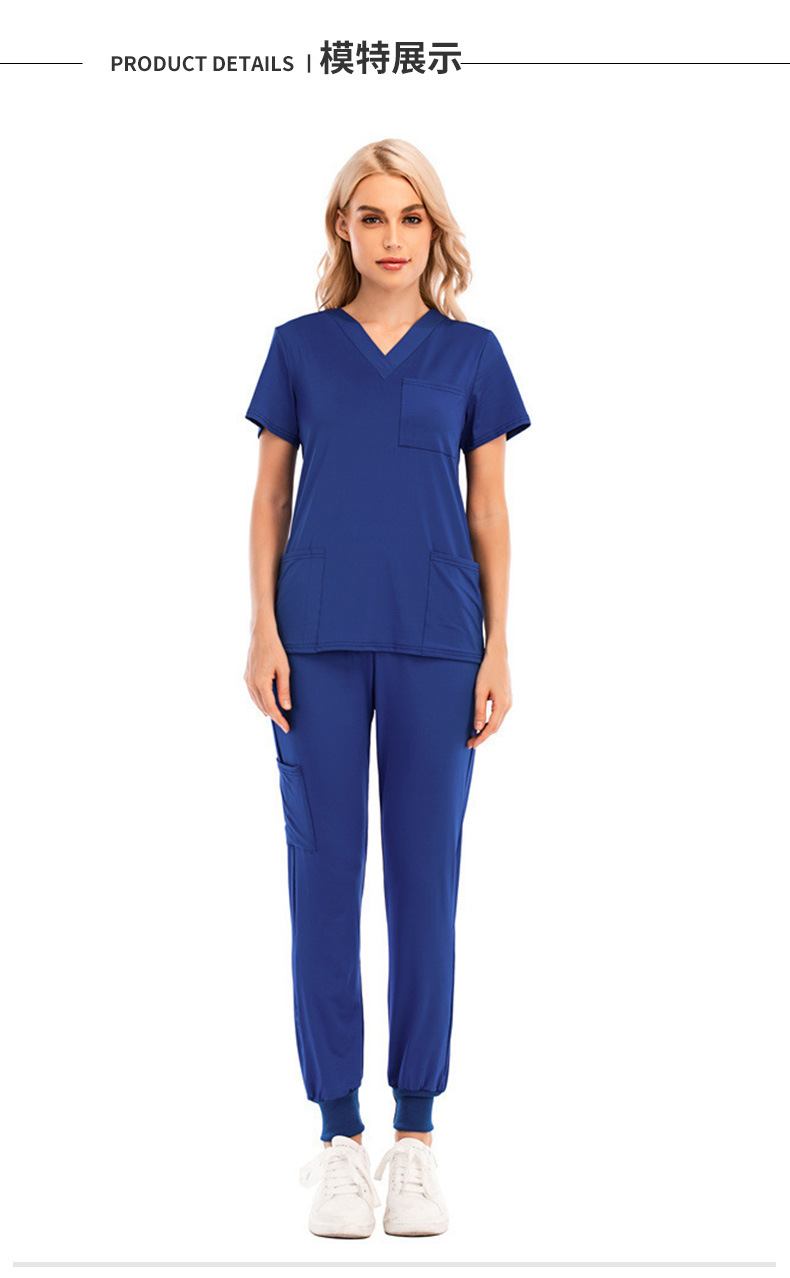new sports and leisure solid color and v-neck short sleeve pocket nurses' uniform medical protective suit split nurse work uniforms suit