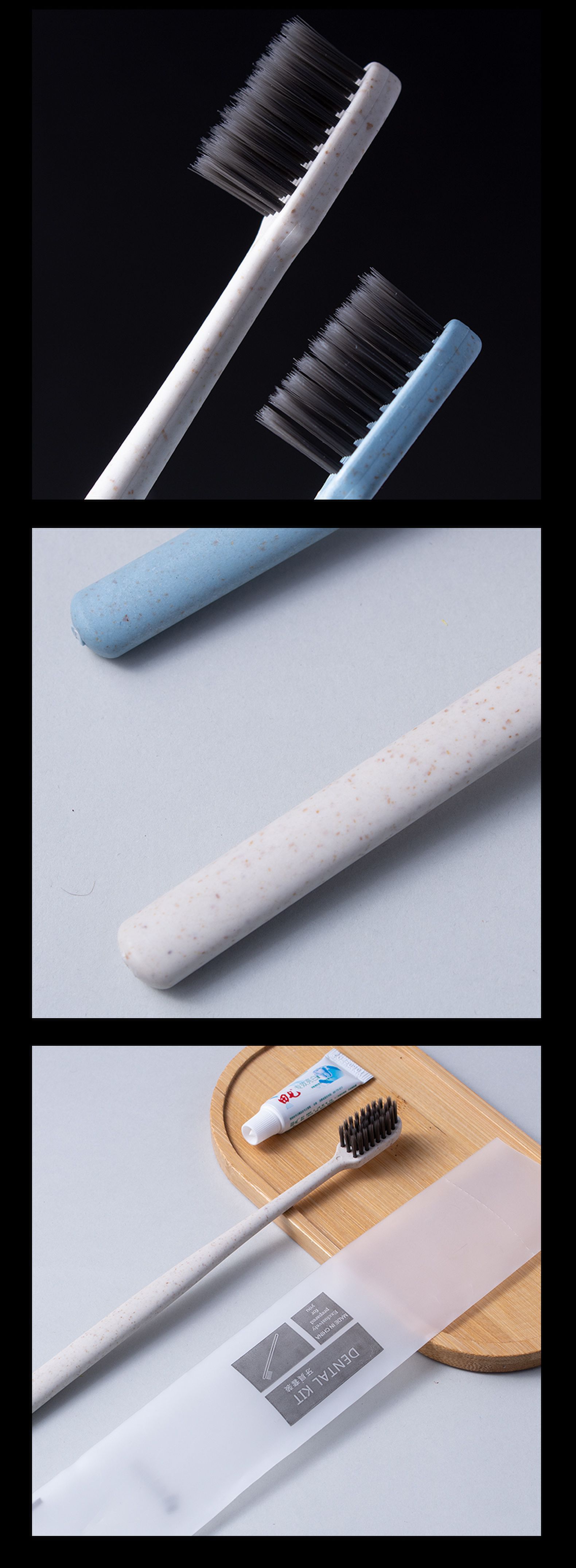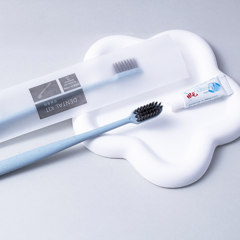 light blue toothbrush + toothpaste + soft-film bag