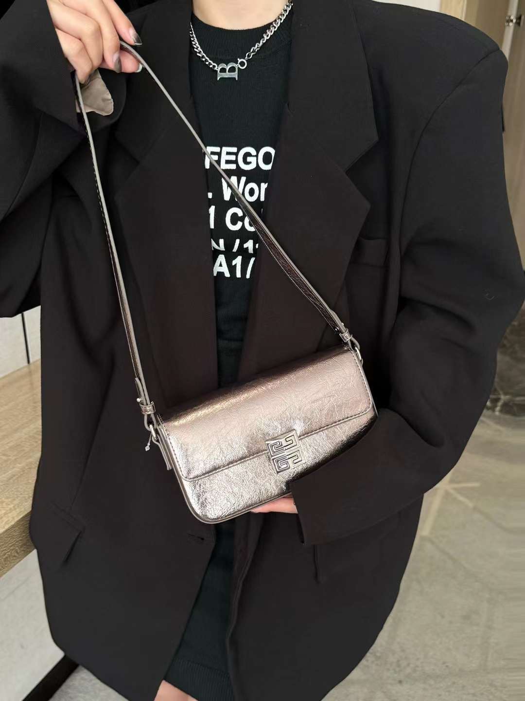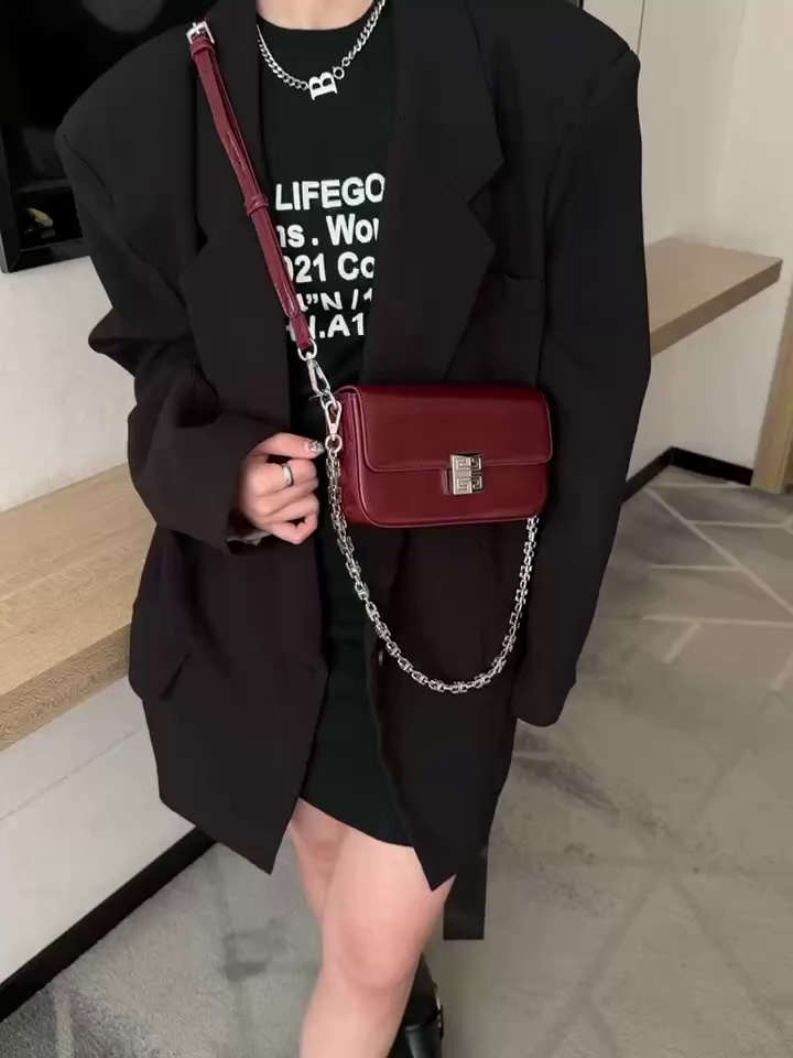 solid color sense silver small bag ladies 2024 new popular all-matching chain messenger bag fashion super hot small square bag