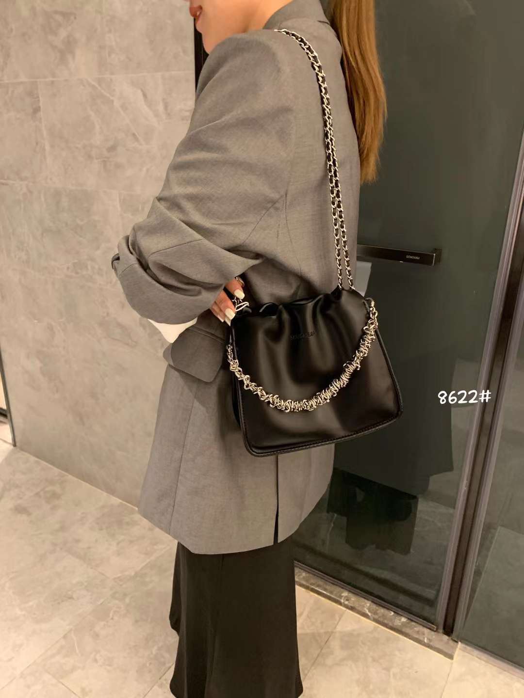 european and american fashion leather folds cloud bag underarm bag women's fashion sense niche chain stray bag cross body bucket bag