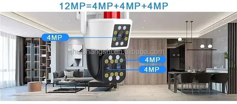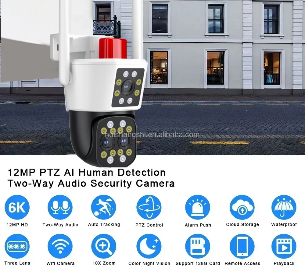 HD 12MP 6K PTZ IP Camera WiFi 8MP Three Lens Home Security Protection Motion Detection Outdoor Street CCTV Surveillance