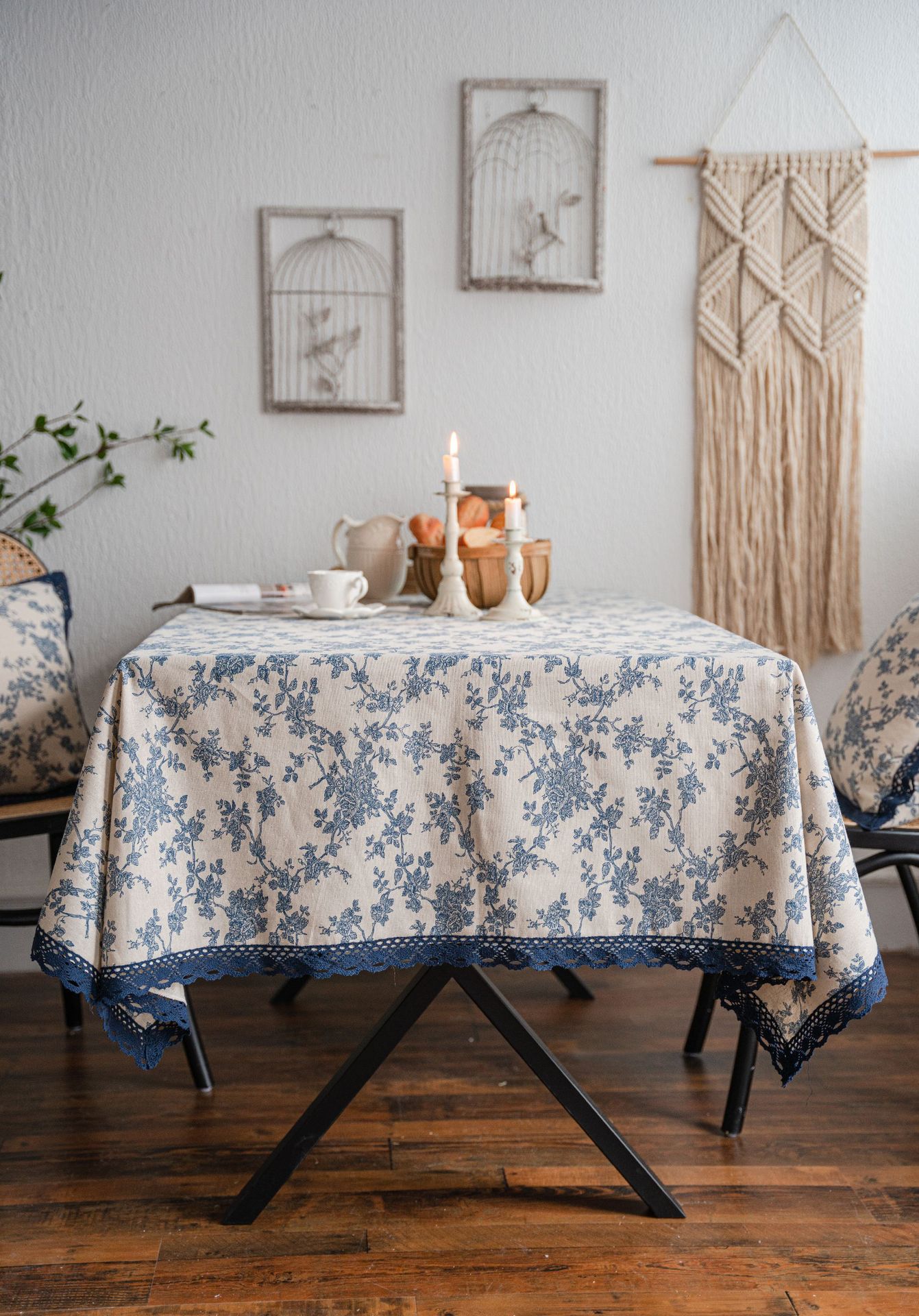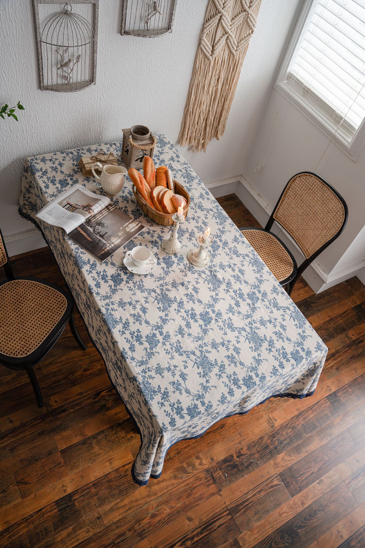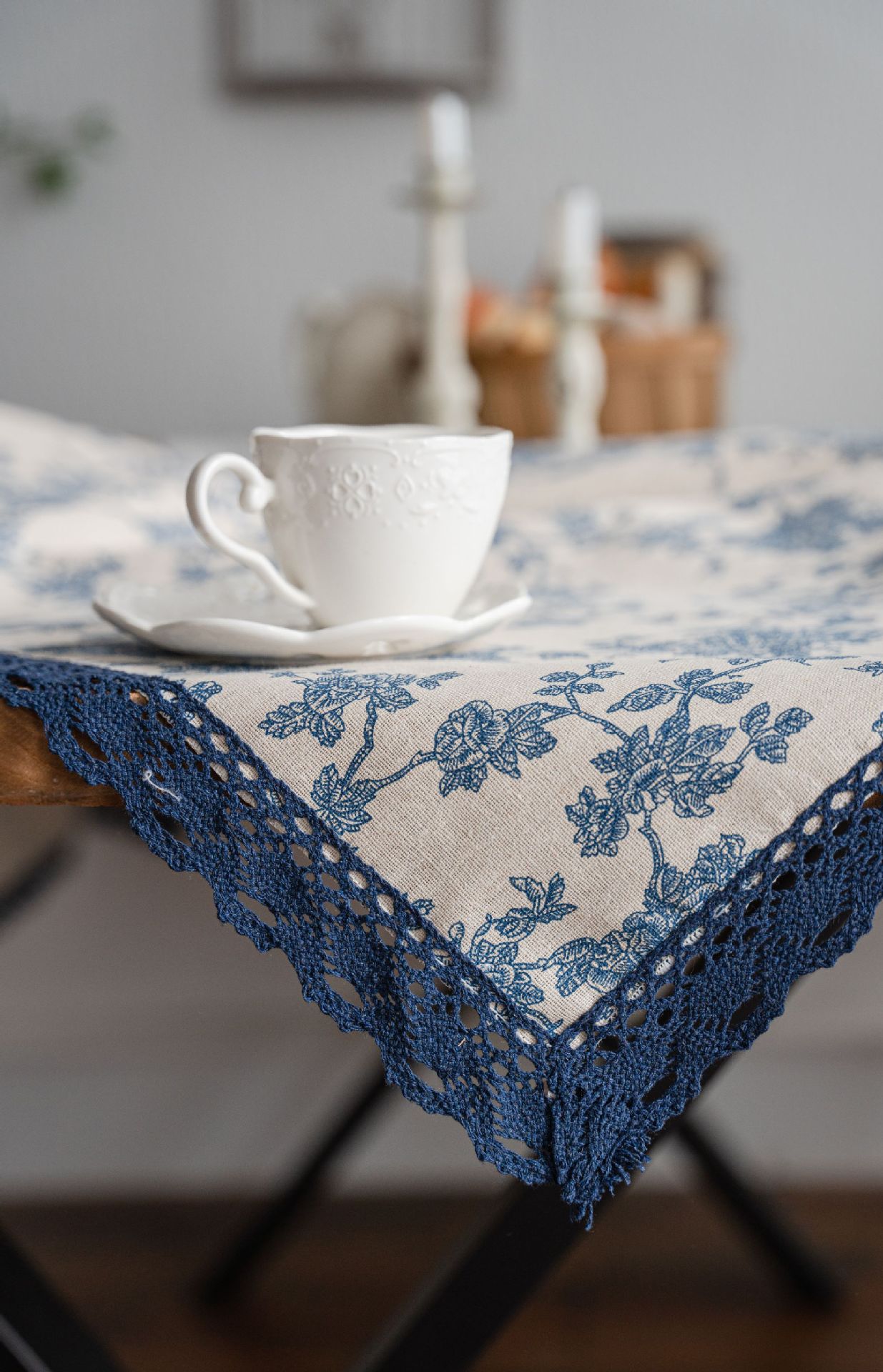 cross-border hot sale blue rose printed pastoral cotton linen tablecloth tablecloth wholesale household cover towel lace fabric
