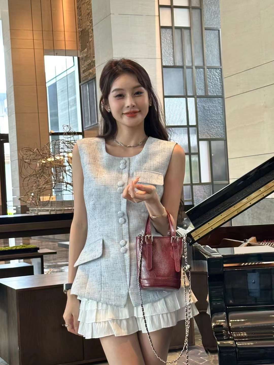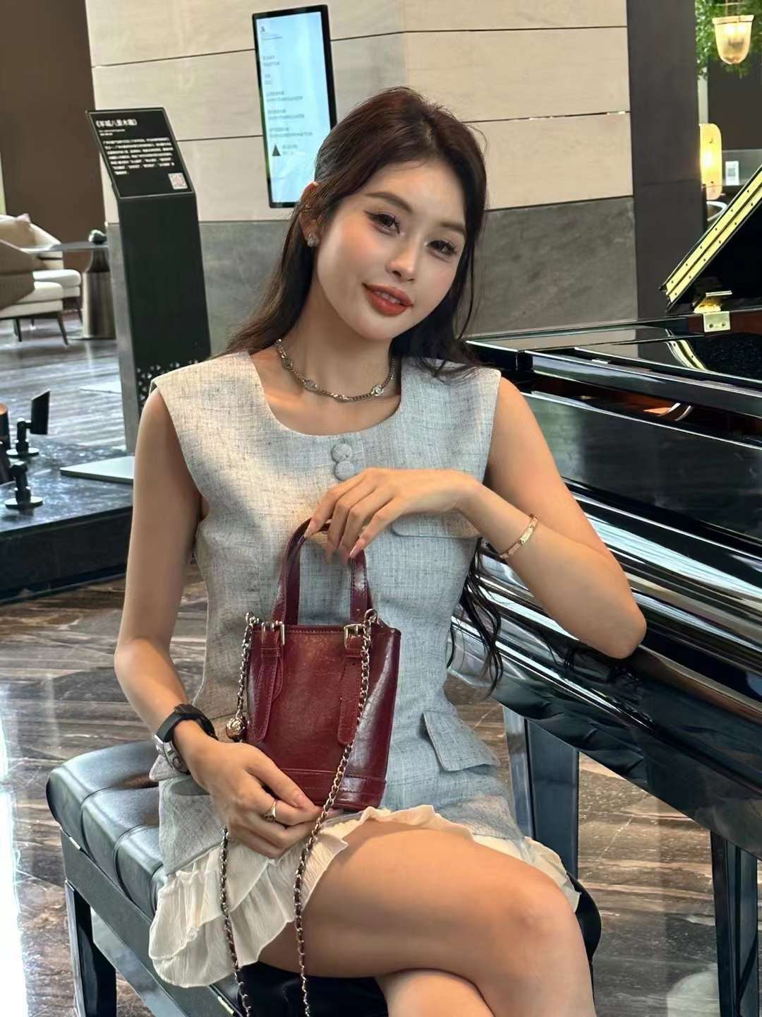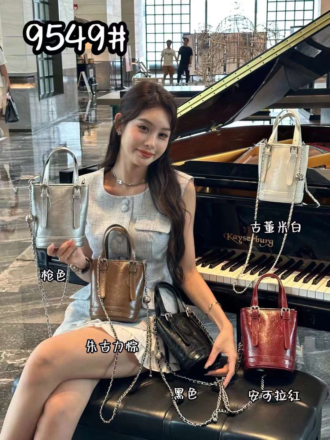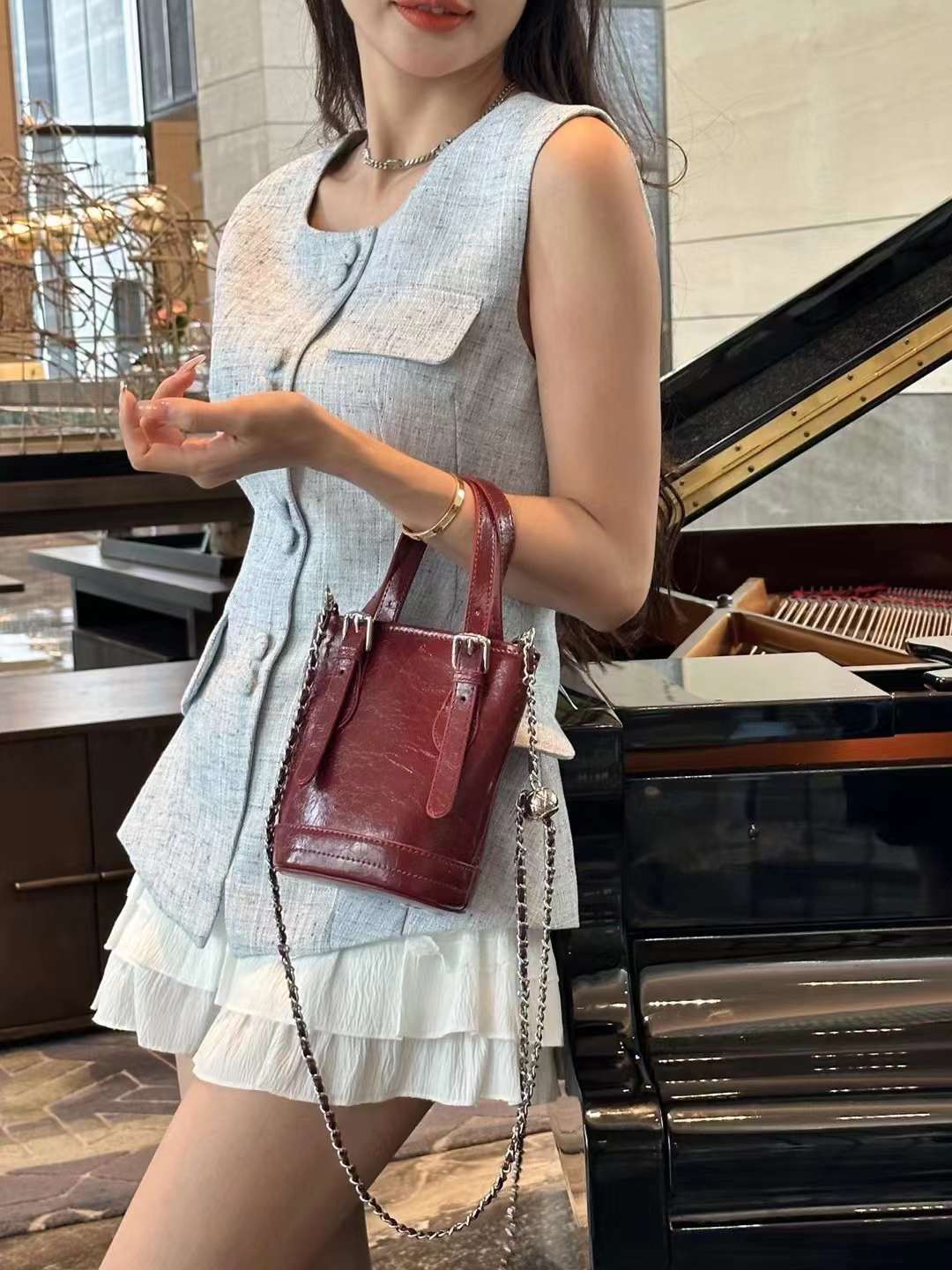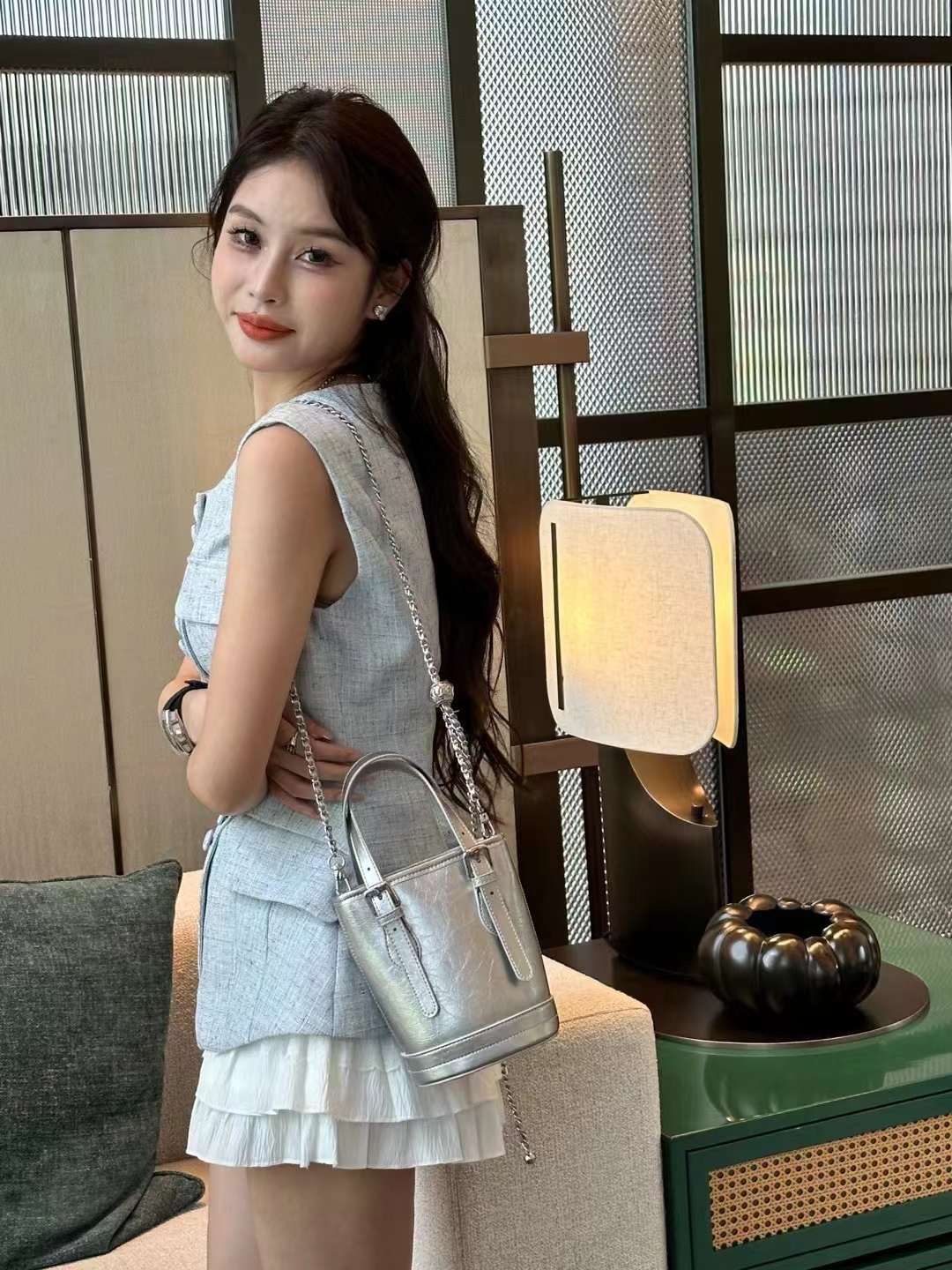 summer silver bag women's 2024 new fashion sense outing small bag popular shoulder cross body bucket bag