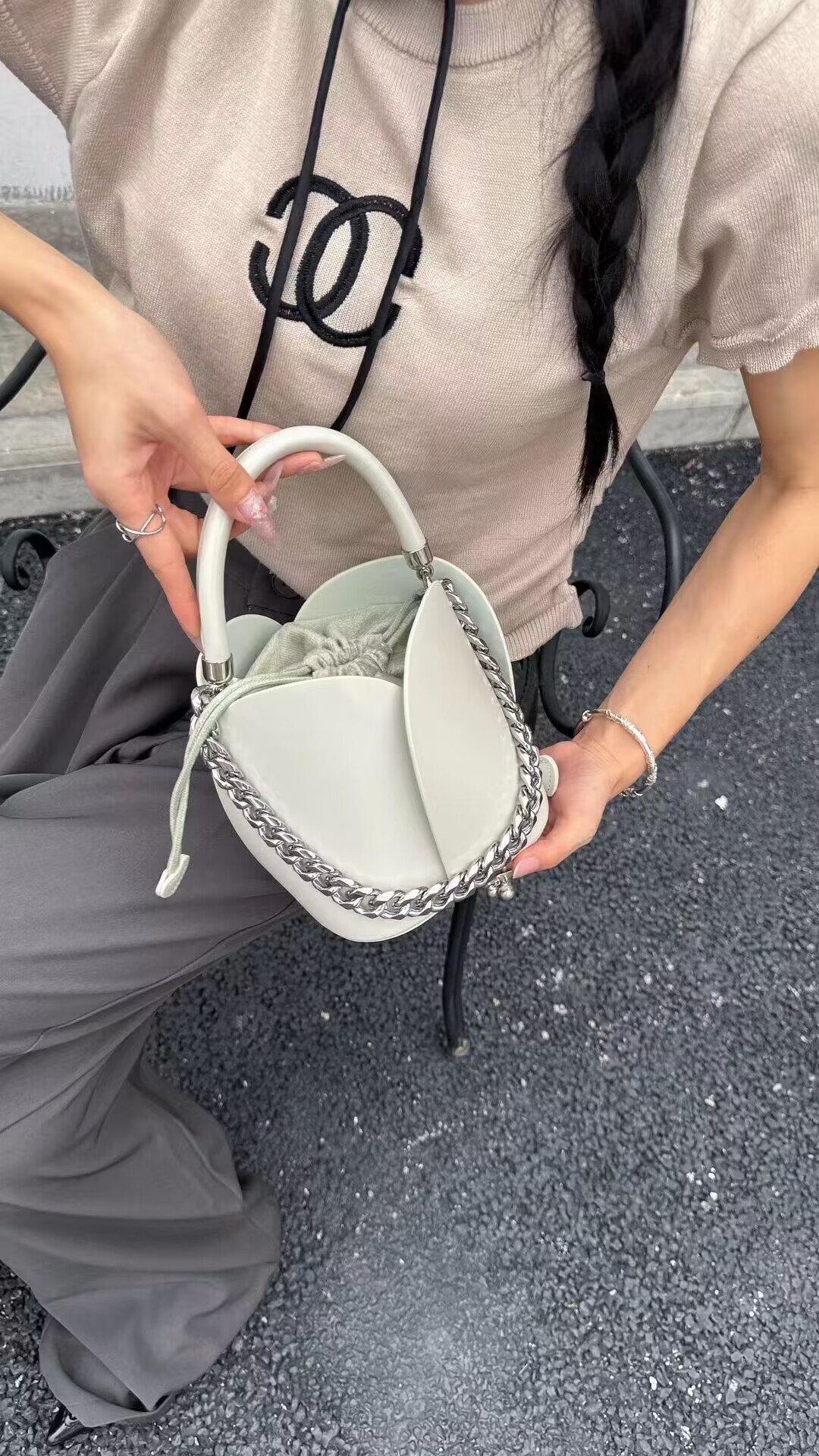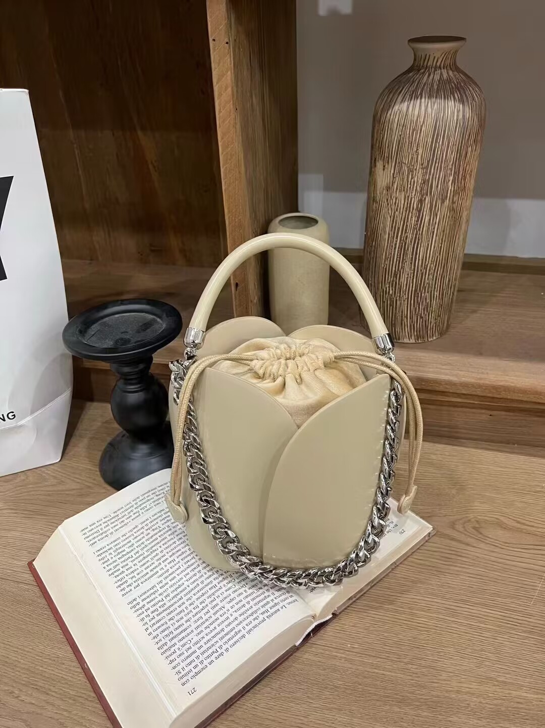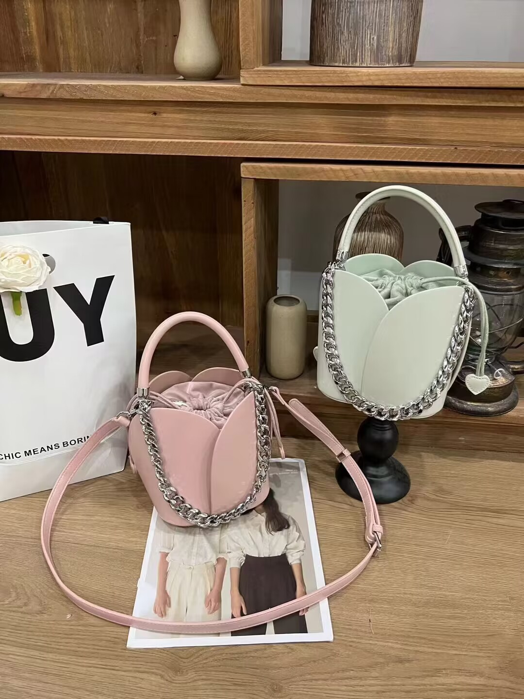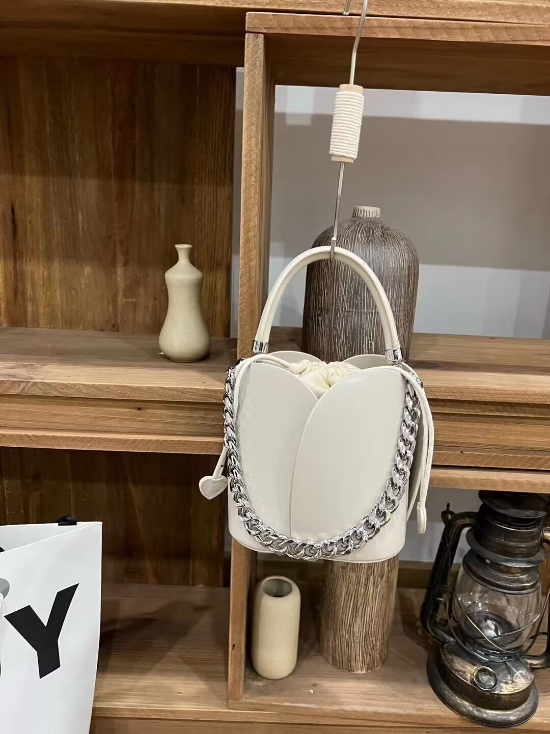 petal bucket bag chain western style stylish genuine leather portable women's bag crossbody niche retro small bags drawstring