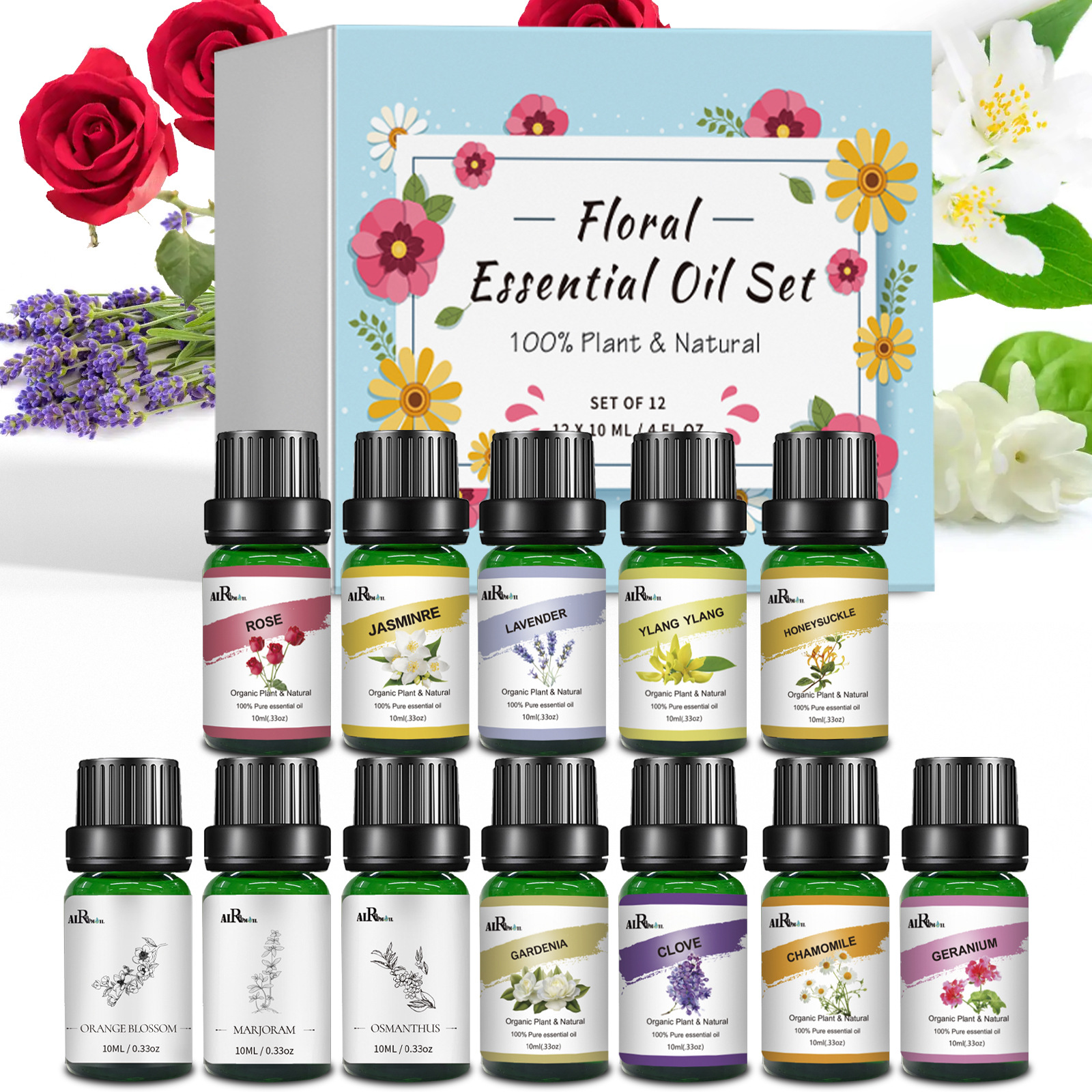 12-piece essential oil cross-border single square floral fragrance series aromatherapy aromatherapy car massage essential oil kit gift sample