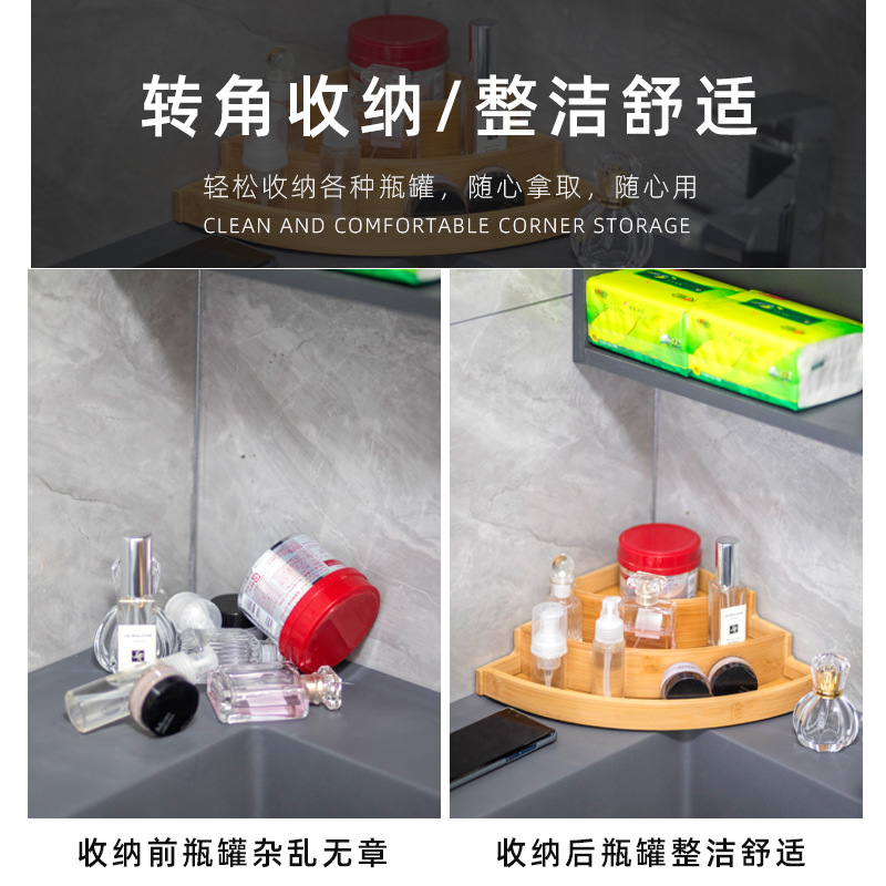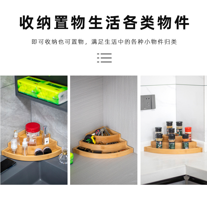 customized bamboo rack kitchen seasoning storage table corner storage neat three-layer storage box bamboo material