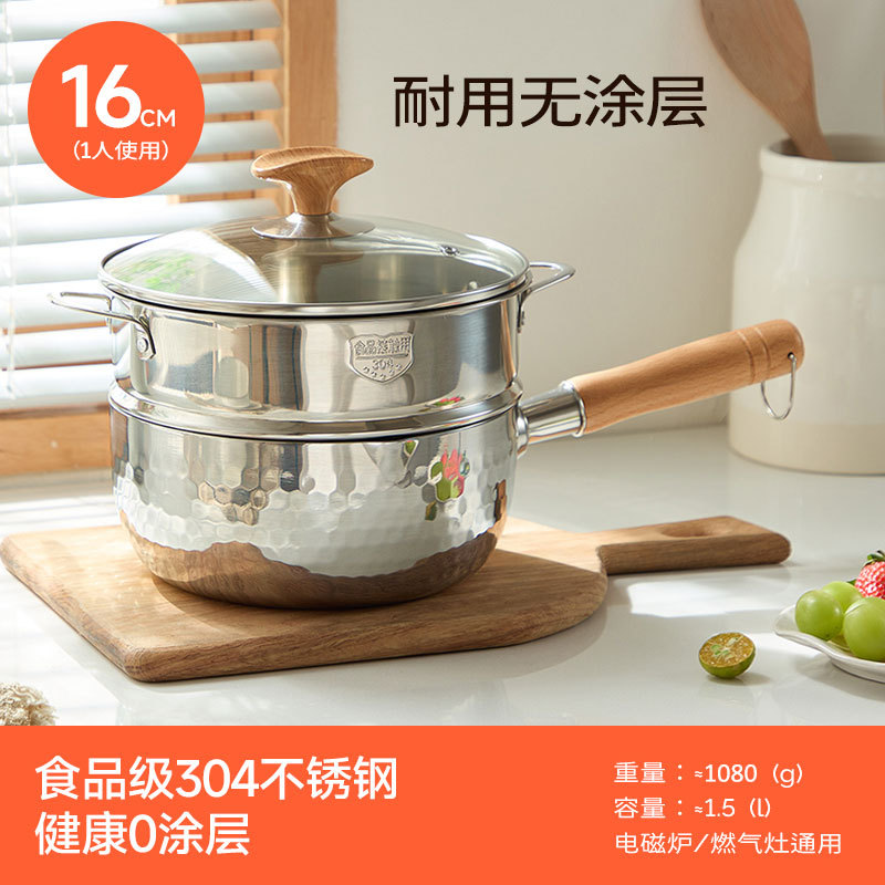 16cm [thickened three-layer steel, healthy 0 coating] pot + cover + steaming rack