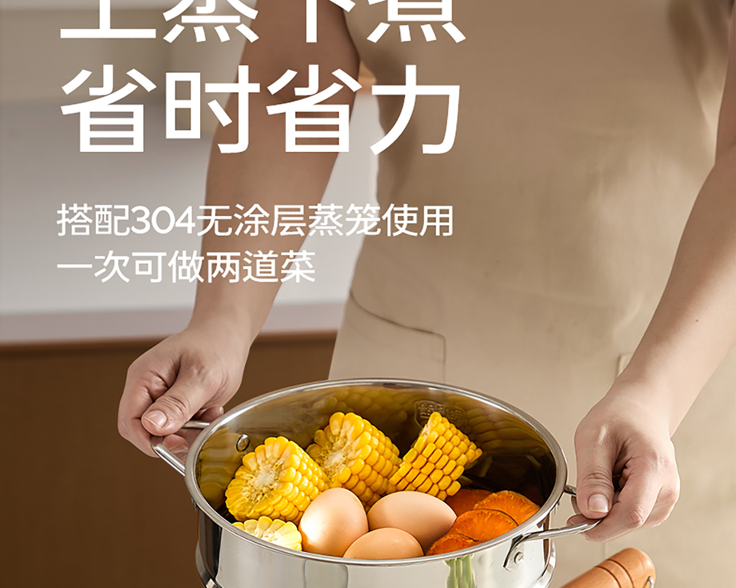 18cm [thick three-layer steel, healthy 0 coating] pot + cover + steaming rack