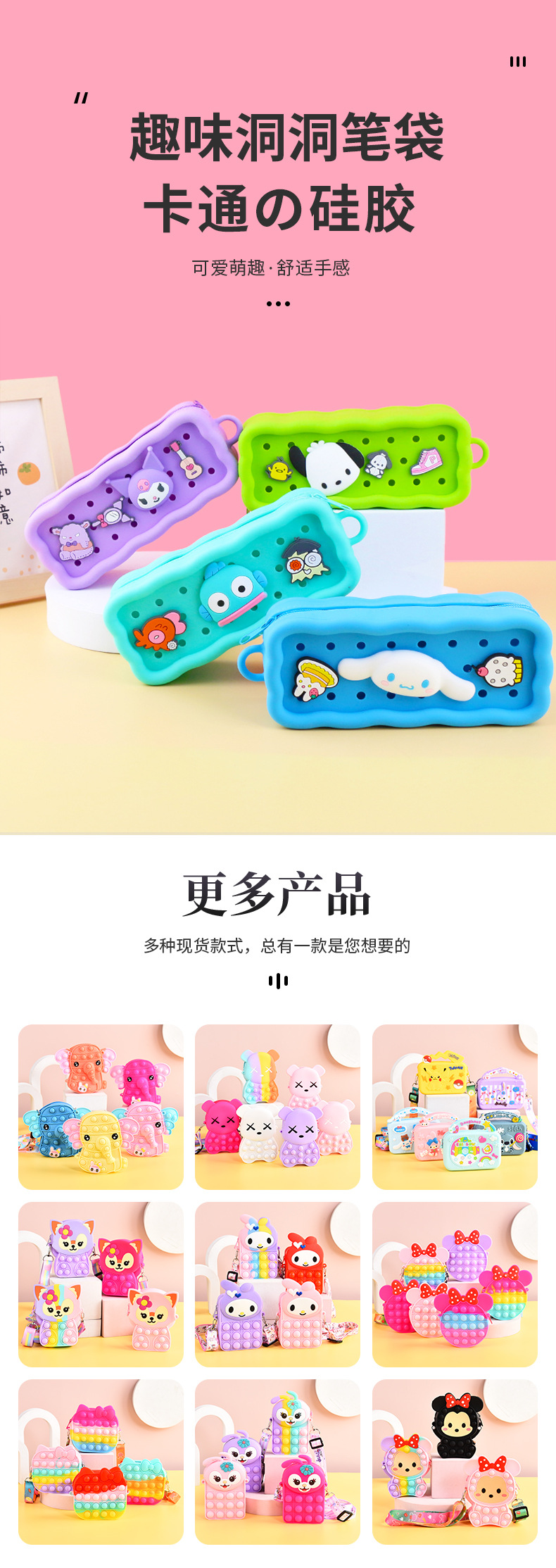 diy cute silicone hole pencil case student large capacity stationery bag pencil bag simple stationery storage silicone bag