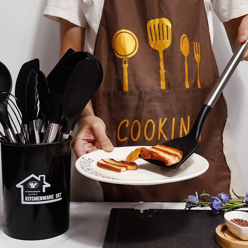stainless steel tube handle silicone kitchenware 12-piece set-black