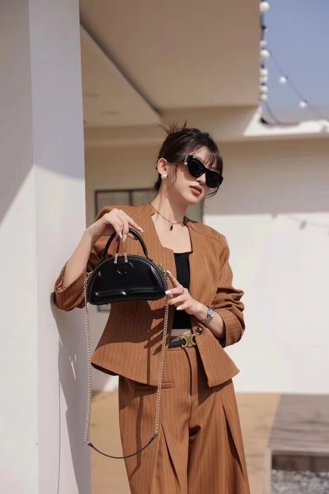 2024 new fashion silver bag light luxury minority solid color sense genuine leather portable small bag chain shoulder messenger bag