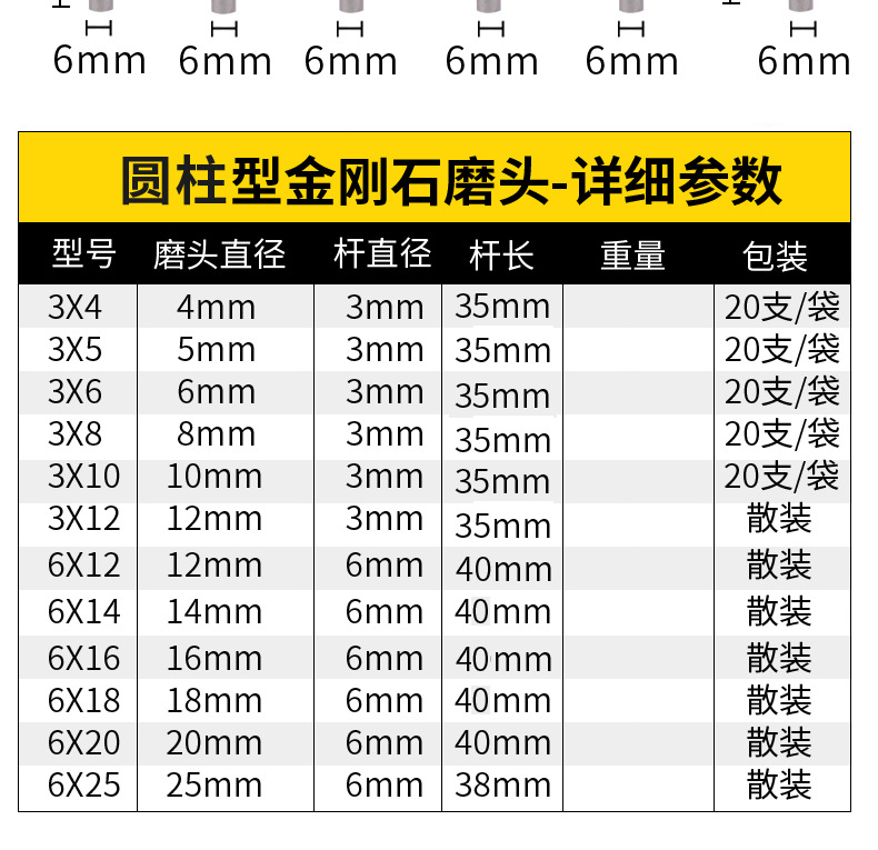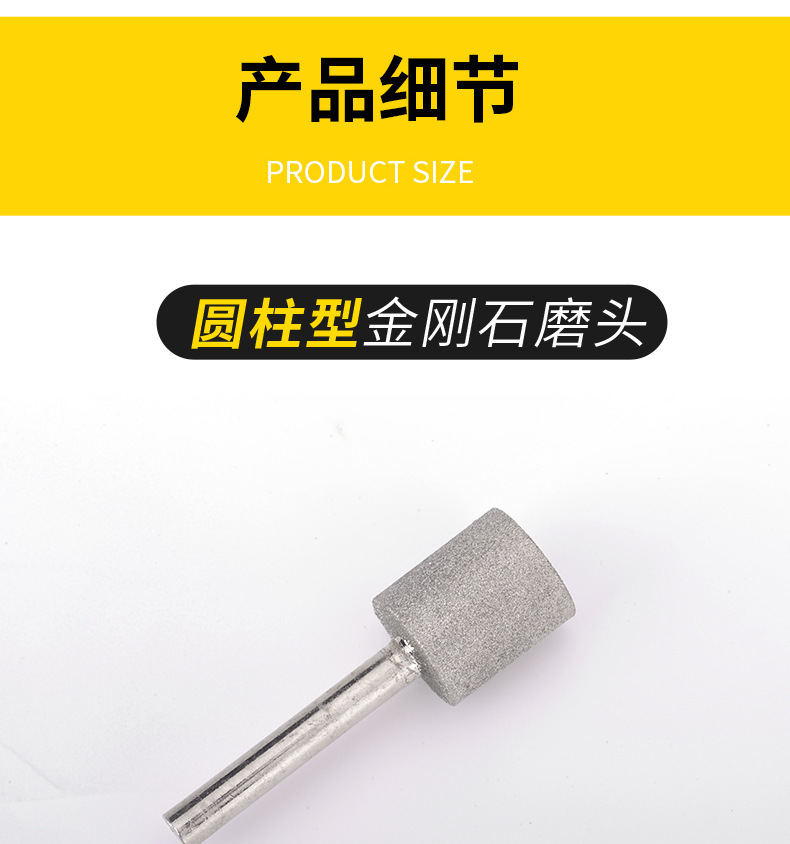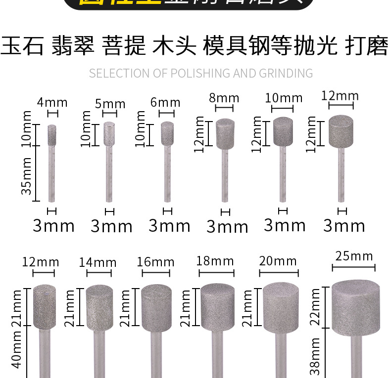 Cylindrical Diamond Grinding Head Frotton Polishing Needle Jade Carving Agate Jade Card Grinding Carving Tool 3mm/6mm Handle
