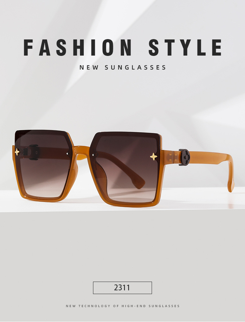 korean style trendy plain lower semi-rimless sunglasses internet-famous glasses 2023 new fashion large rim sunglasses for women sun-shade glasses
