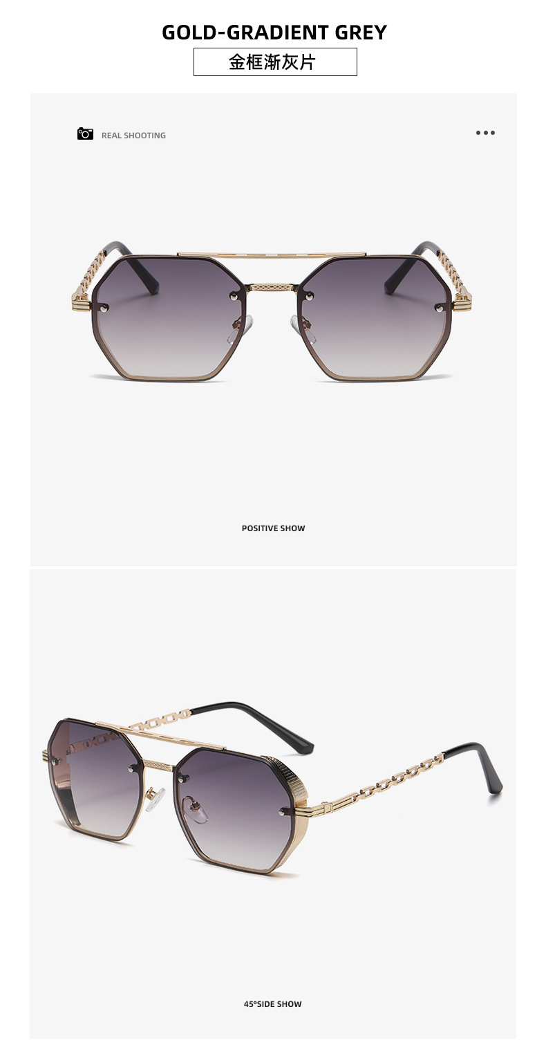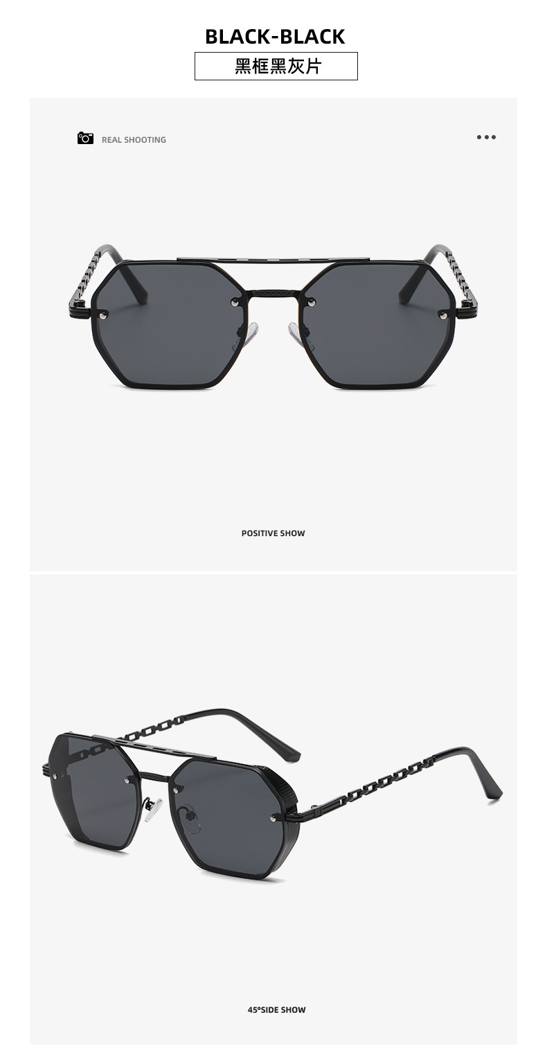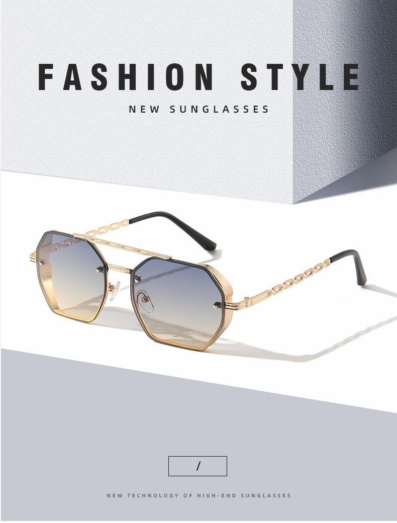 2024 cross-border new arrival high-grade multilateral double beam sunglasses women's fashion metal chain glasses leg sun shade sunglasses