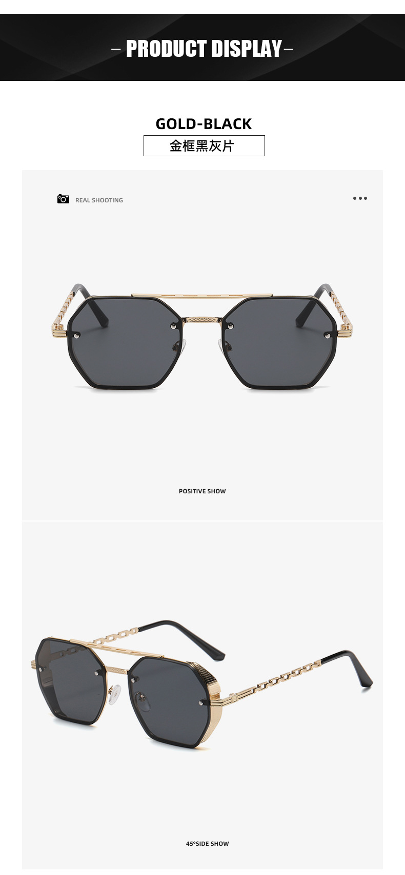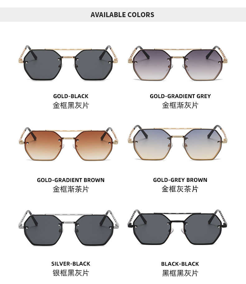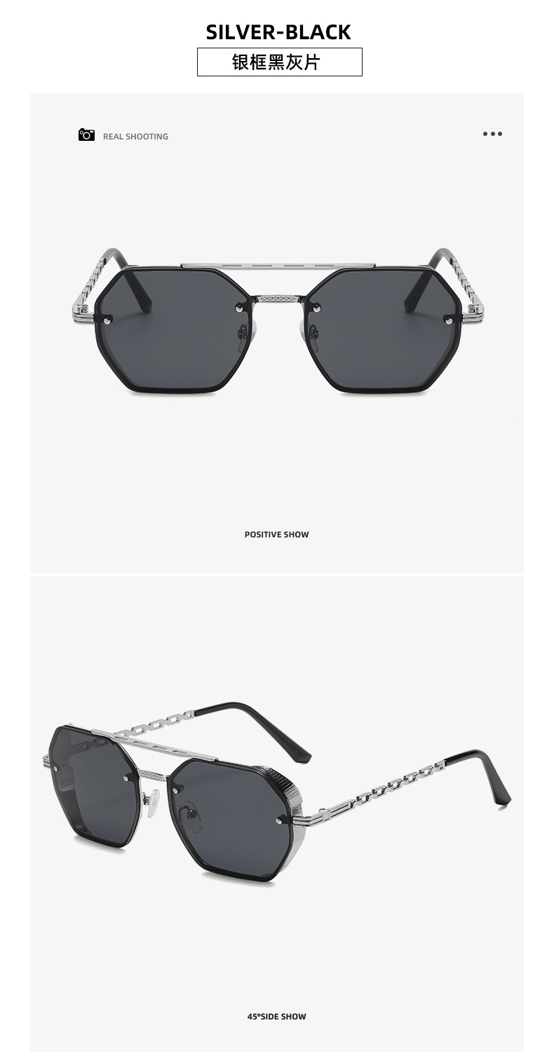 2024 cross-border new arrival high-grade multilateral double beam sunglasses women's fashion metal chain glasses leg sun shade sunglasses