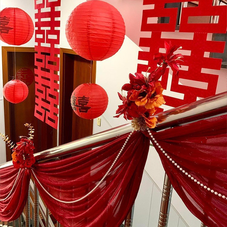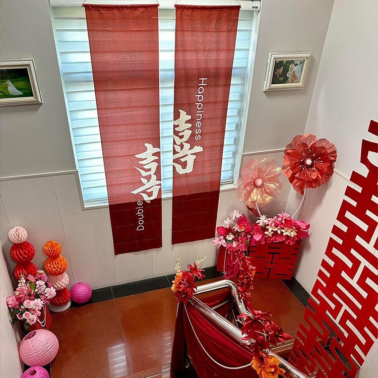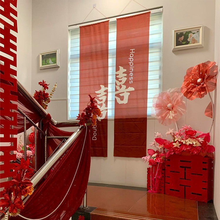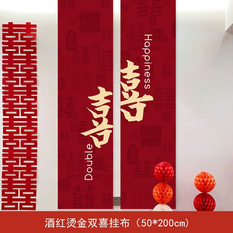 wine red bronzing double happiness hanging cloth