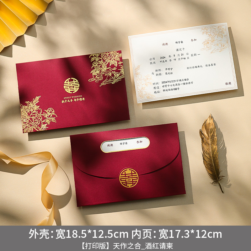 Wedding Invitations - Stock Available 2023 Chinese-style Retro Matte Gold Wedding Invitations Wedding Invitation Printed Wedding Invitations 2023 New Wedding Invitations Customized High-end Atmosphere Wedding Invitation Wedding Ceremony Invitation Wedding Supplies