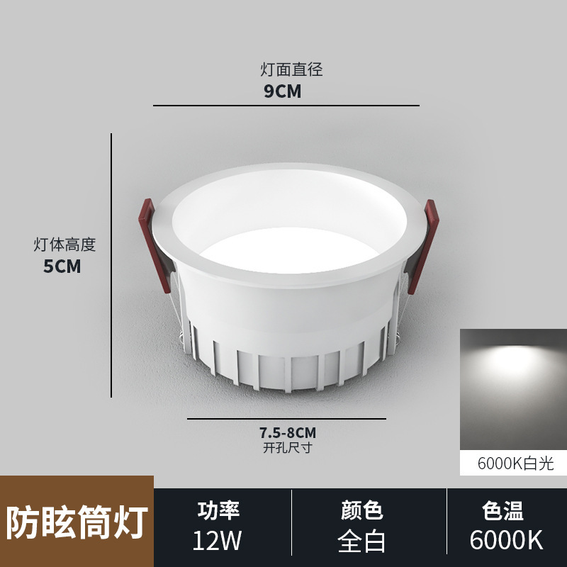 white and black shell/12w/hole 75-80mm/white light 6000k