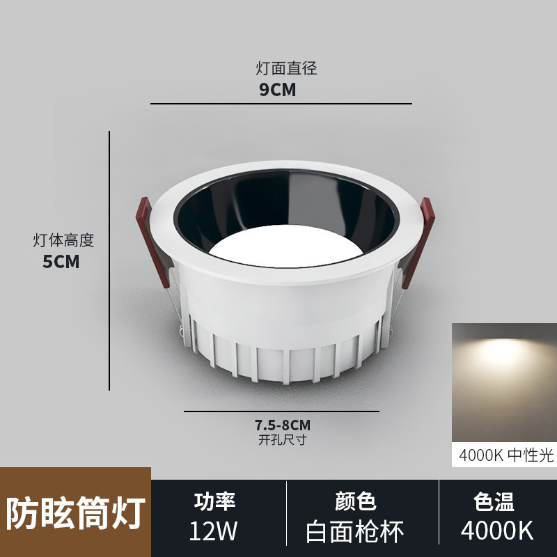 white and black shell/12w/hole 75-80mm/neutral light 4000k