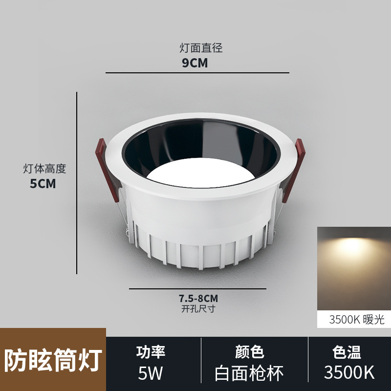 white and black shell/5w/hole 75-80mm/warm white light 3500k