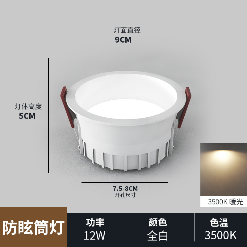 white and black shell/12w/hole 75-80mm/warm white light 3500k