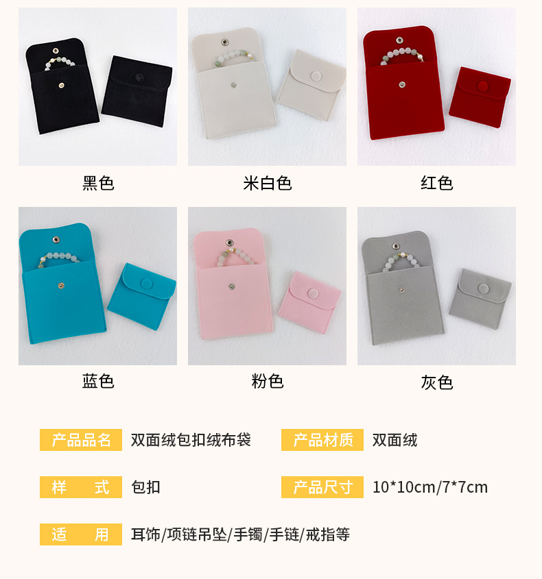 black double-sided velvet bag buckle flannel bag; 10 * 10cm
