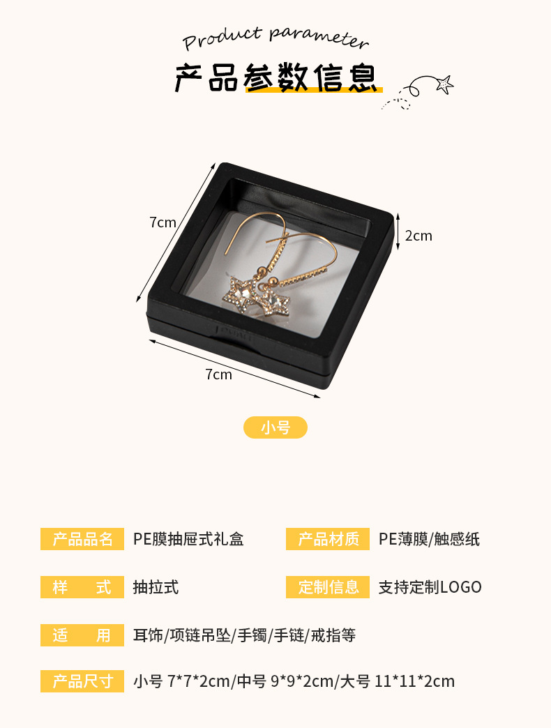 fashion black + black inner box; 7*7 * 2cm