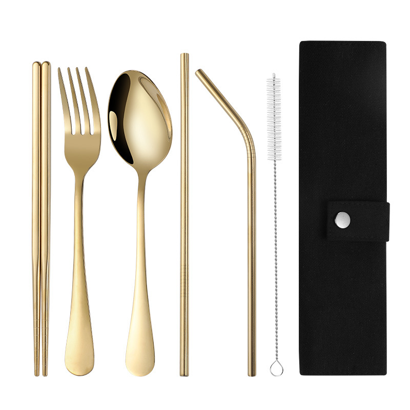 chopsticks rose gold 6-piece set [black cloth bag]]