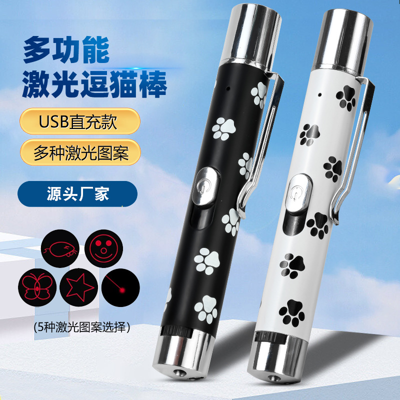 black white interactive toy with lanyard usb charging five-pattern silk screen pen holder laser teaser