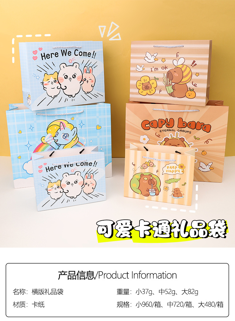 cute cartoon small size; white cardboard; horizontal version