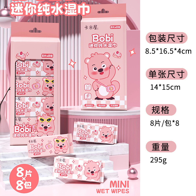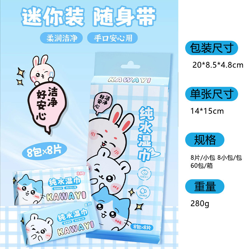 (8 pieces * 8 packs) small capybara pure water wet wipe mini version