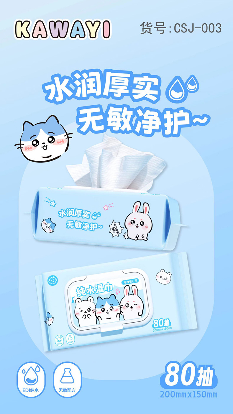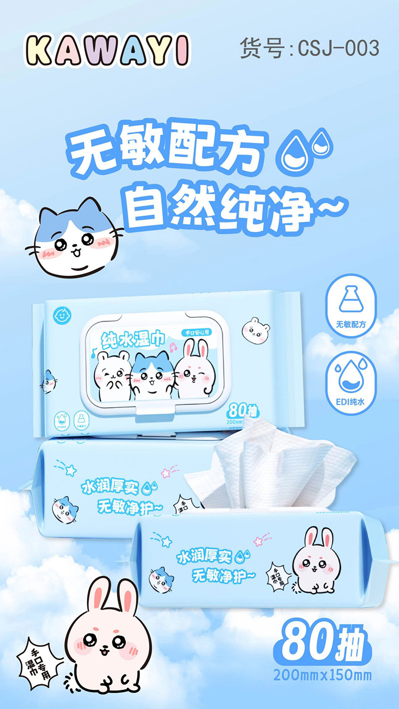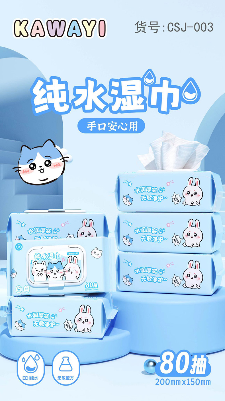 (80 drawers) kawayi pure water wet wipe blue