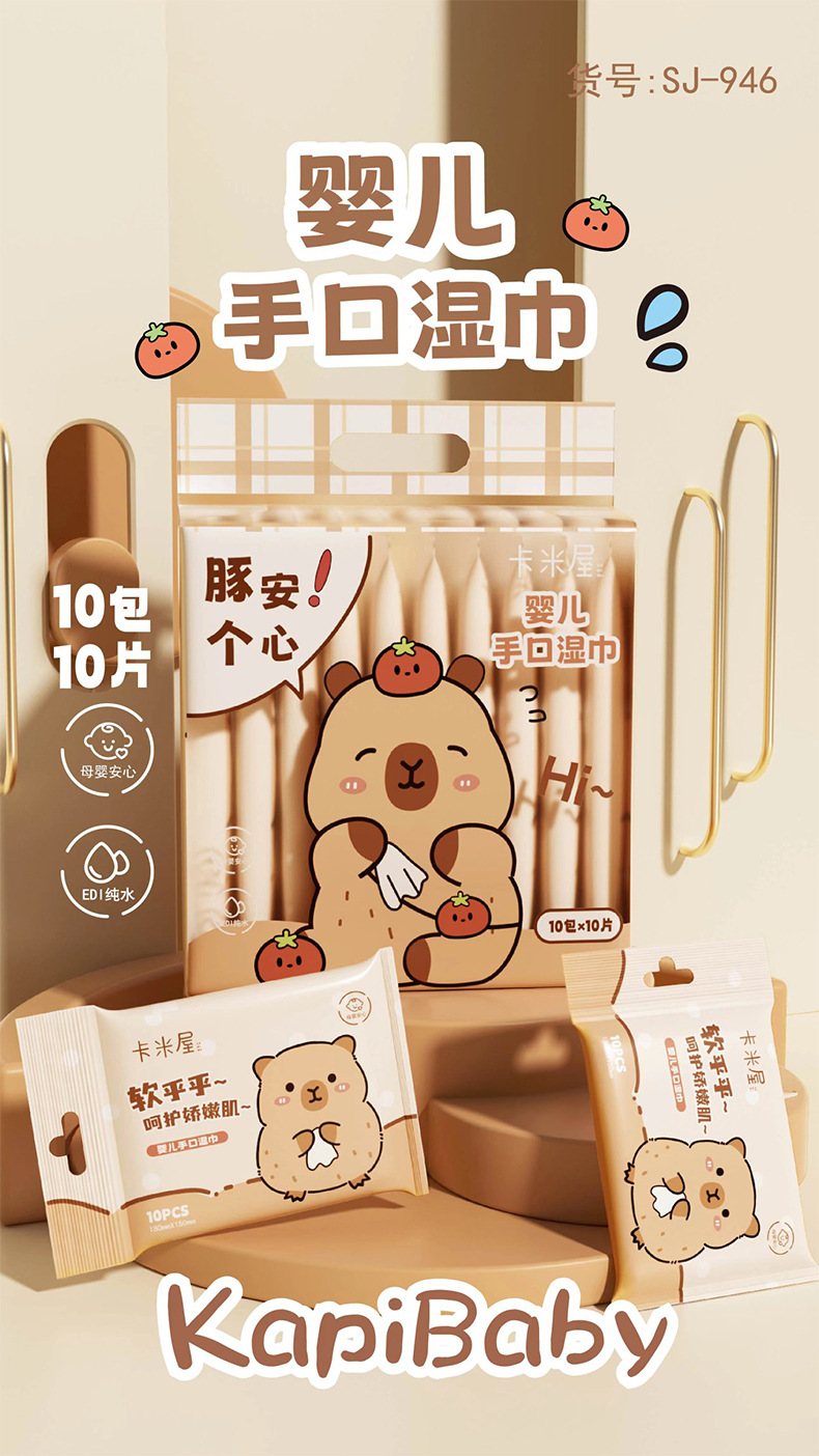(10 pieces * 10 packs) small capybara pure water wet wipe mini version