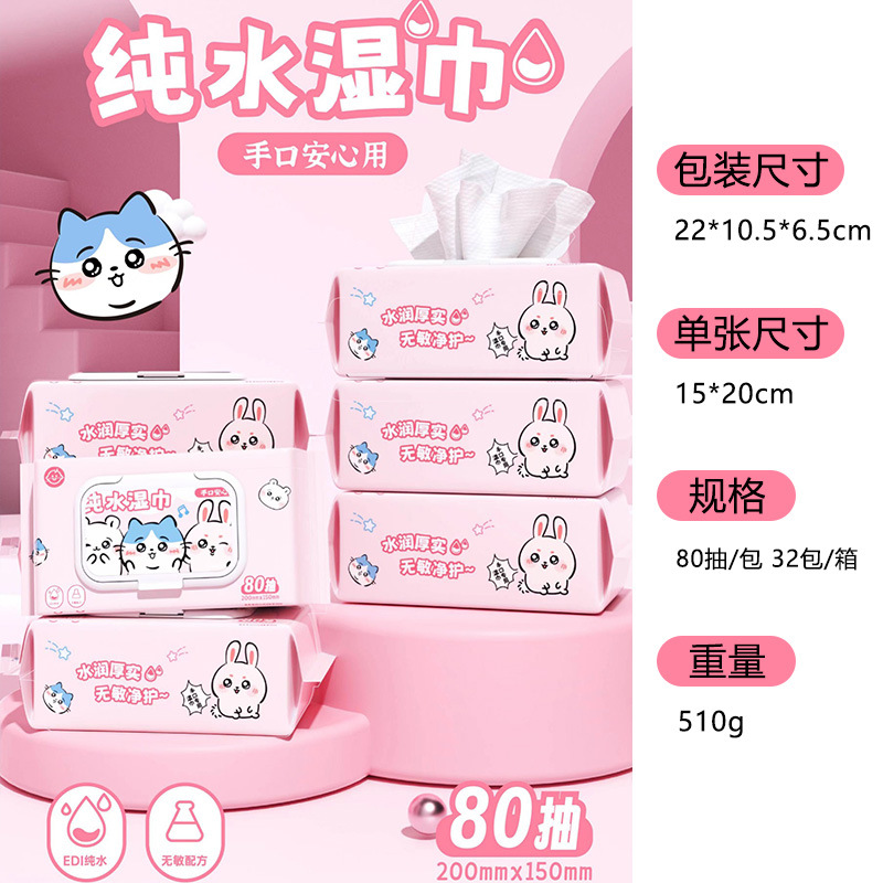 (80 drawers) kawayi pure water wet wipe pink