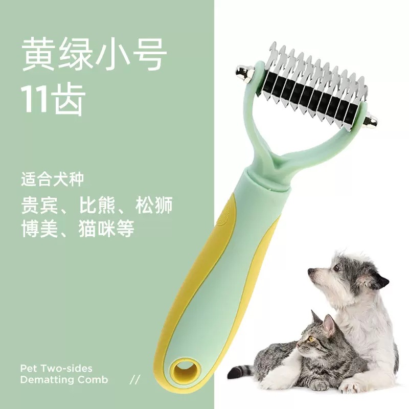 pet double-sided knot untying comb yellow and green s