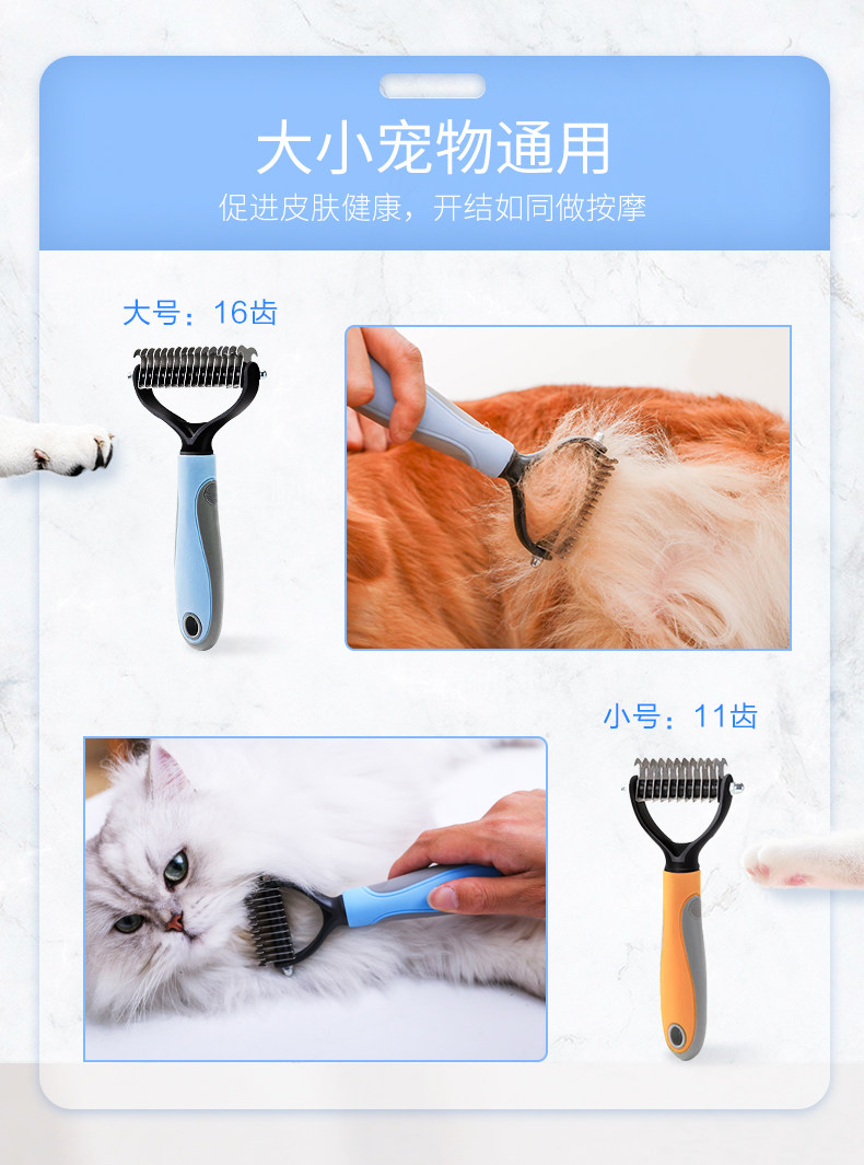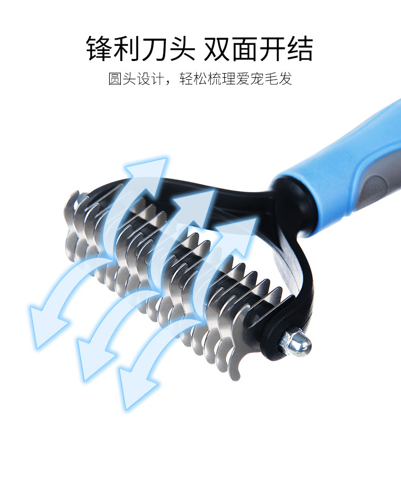 pet double-sided knot untying comb blue s
