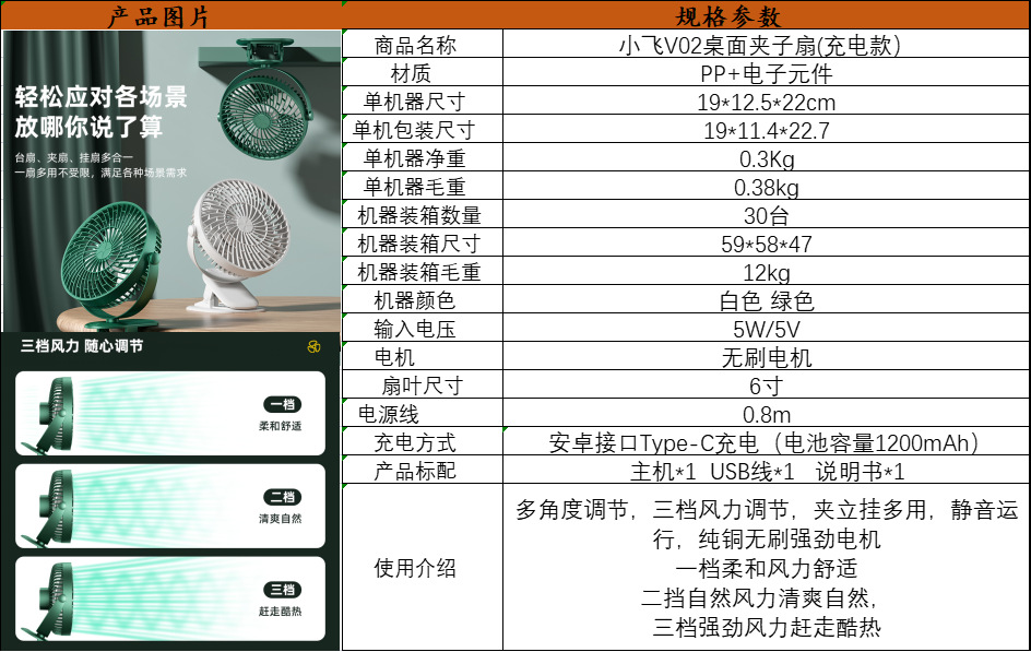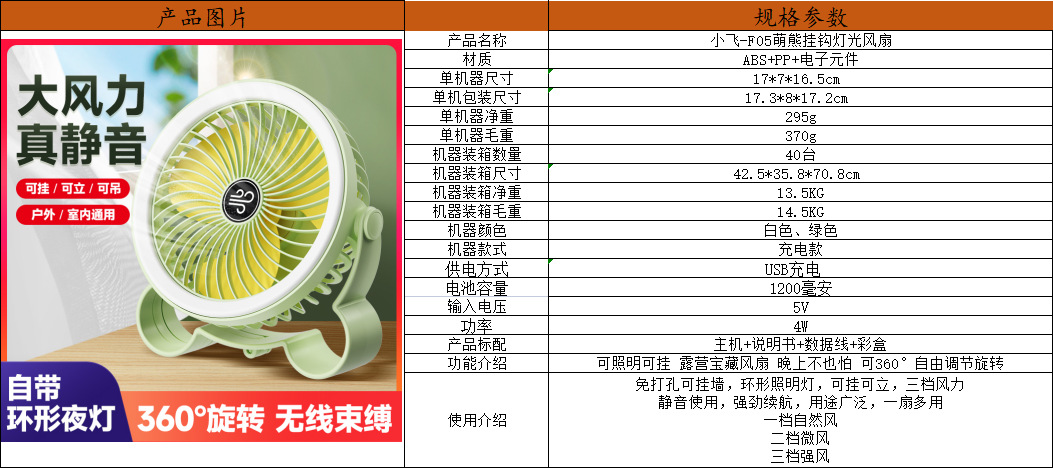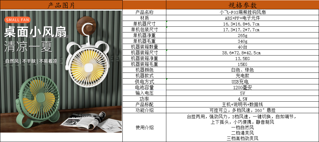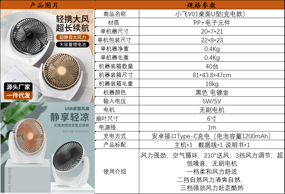 | 6-inch fan (rechargeable) | CN¥ 25.08 | 43974 table available |