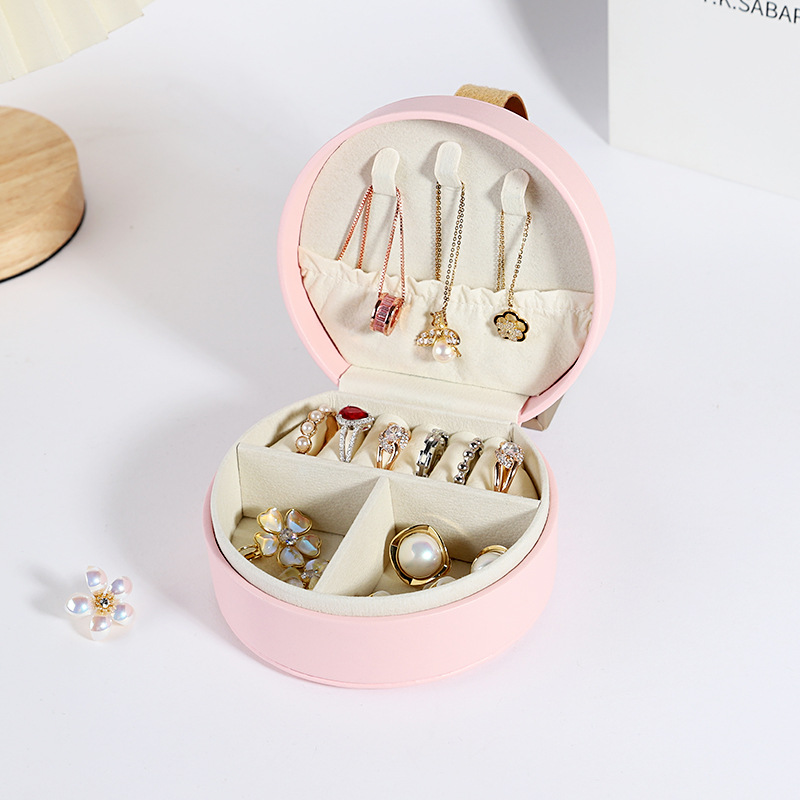 cross-border direct supply portable jewelry bag leather mini-portable box necklace rings ear studs jewelry storage