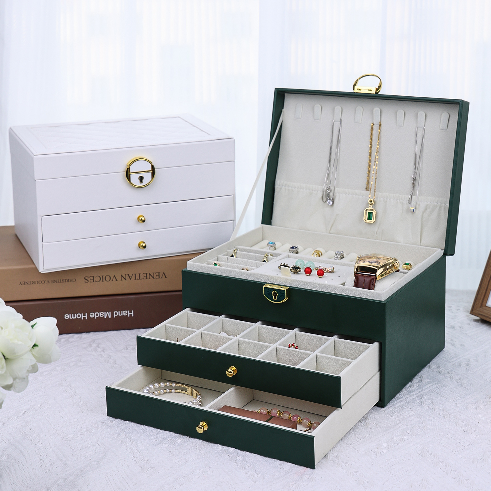 | name: | PU leather three-layer jewelry box | packing method: | single product pack PE bag and then pack outer box |
