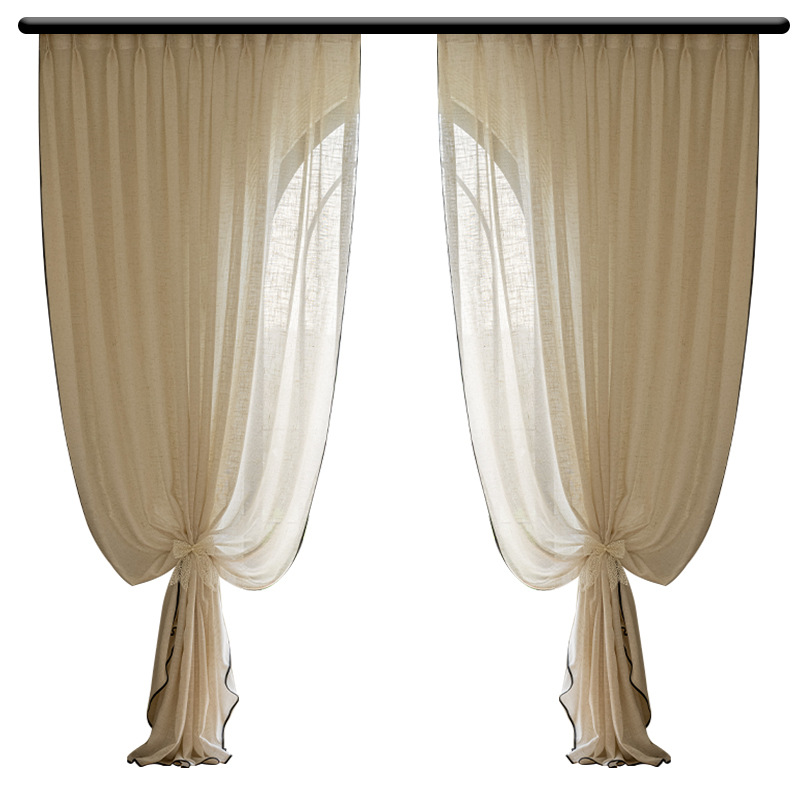 linen mesh curtains french log style advanced modern minimalist living room bedroom hotel light transmission nontransparent mesh curtains