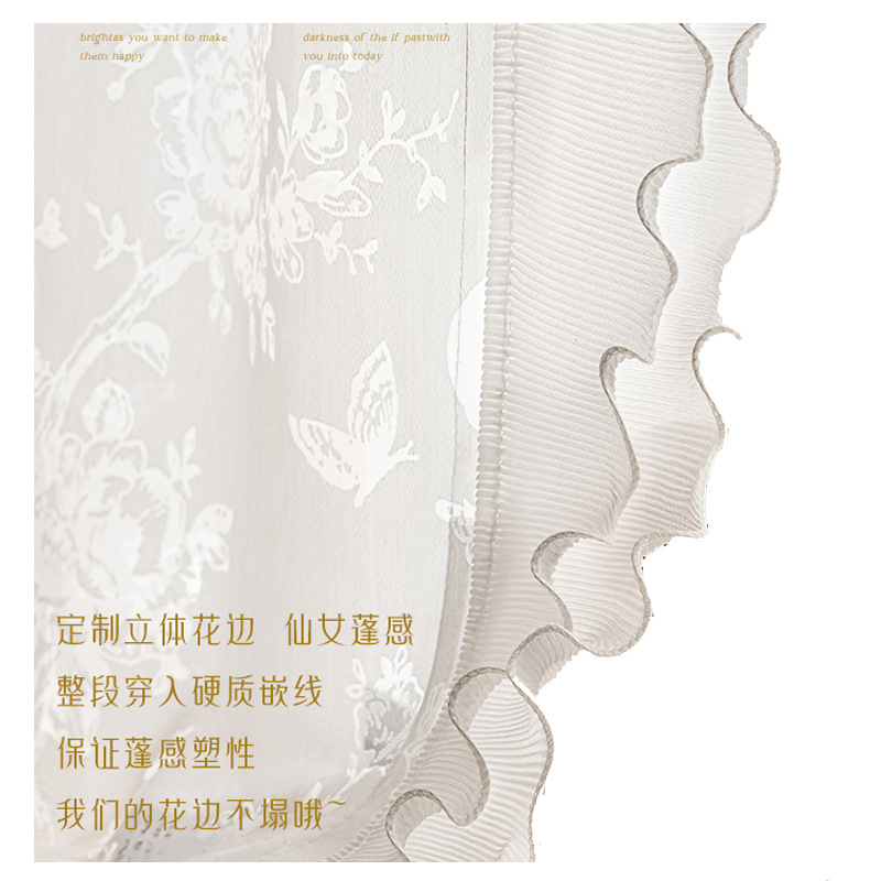 pansy yarn hollow yarn romantic cream style french window screen living room bedroom balcony white mesh curtains light transmission nontransparent