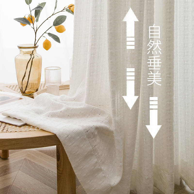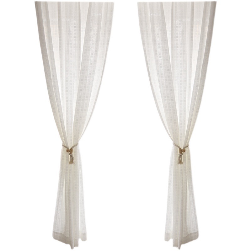 new chinese style thickened cotton and linen white mesh curtains cloth also gauze curtain balcony living room and tea room light transmission nontransparent half cover