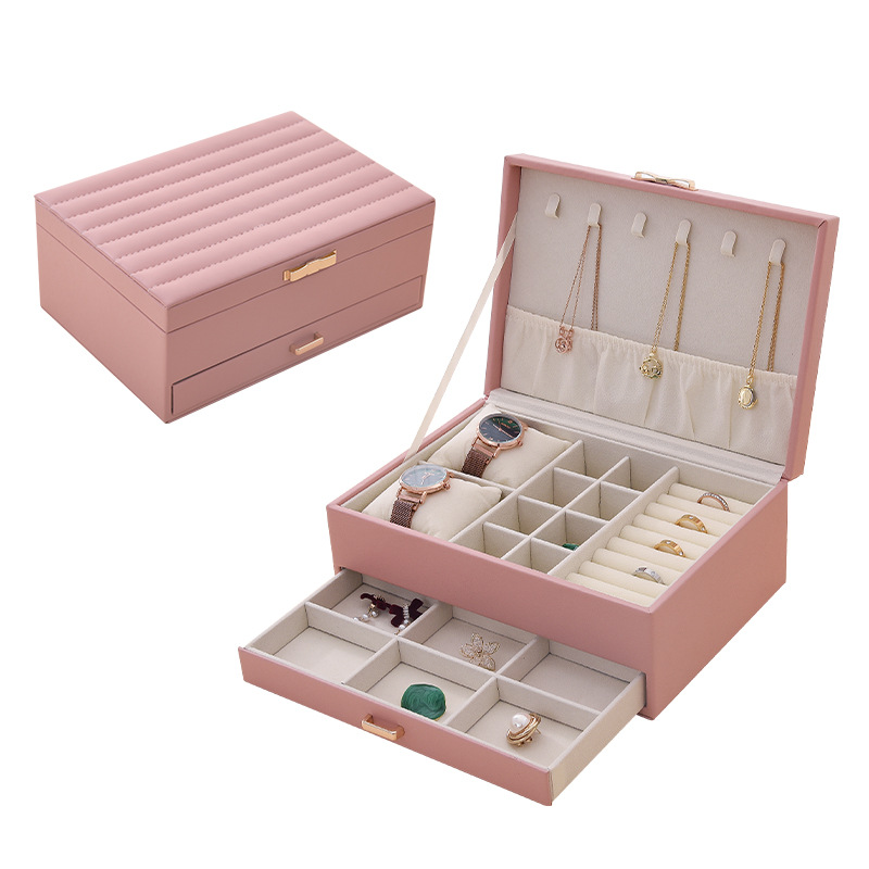 double-layer jewelry box portable princess european style korean earrings simple stud earrings ring hand jewelry storage box