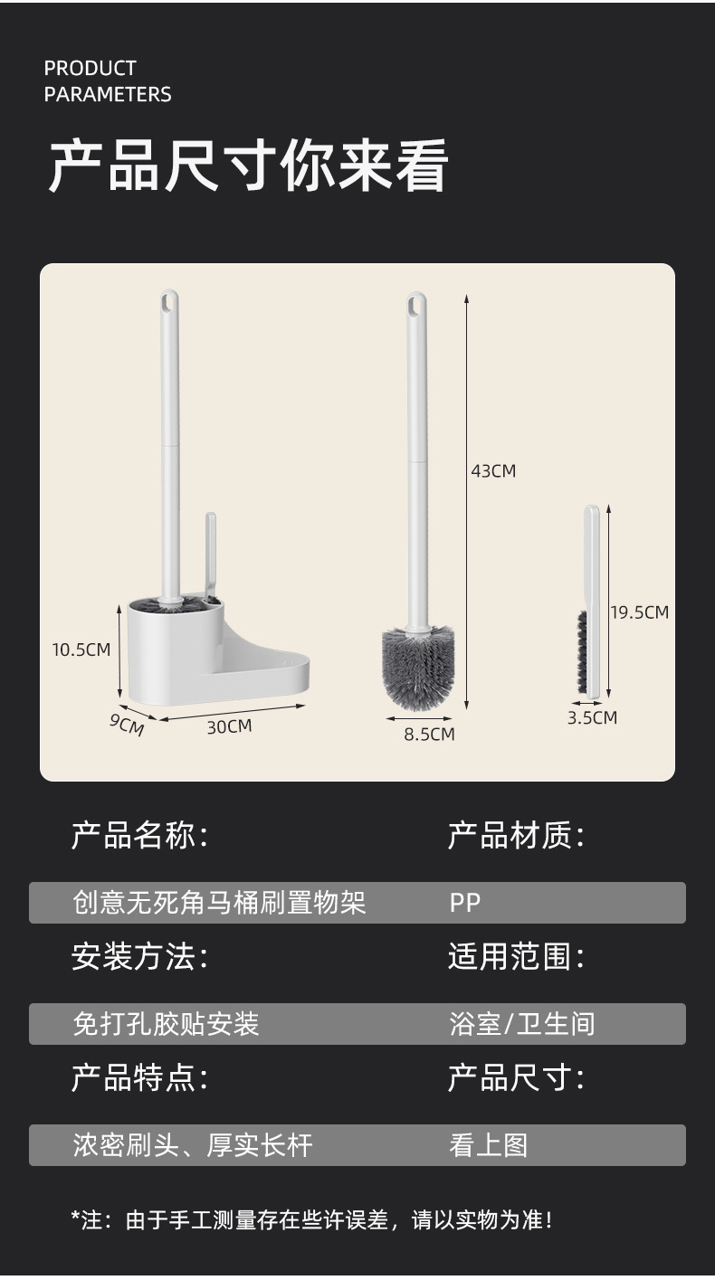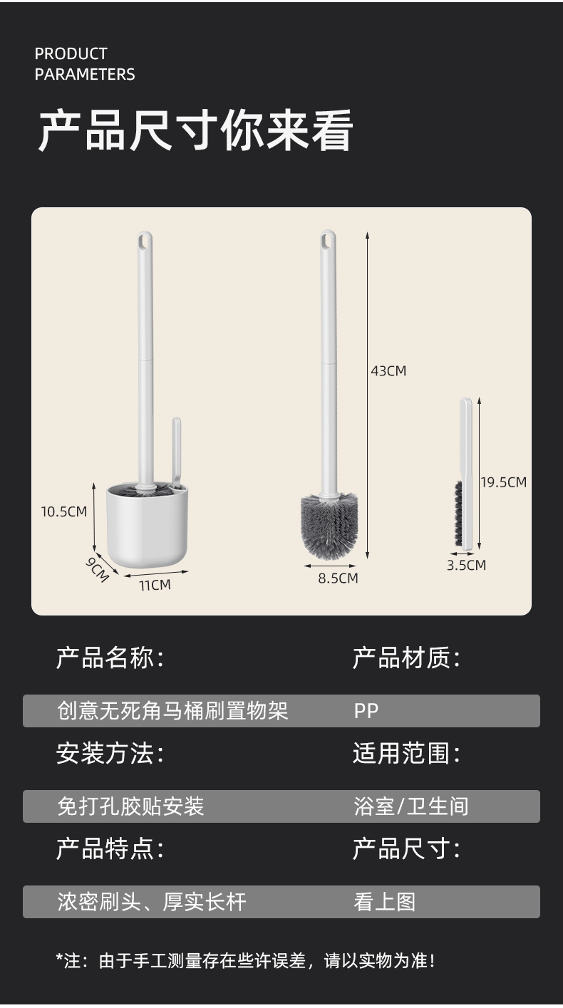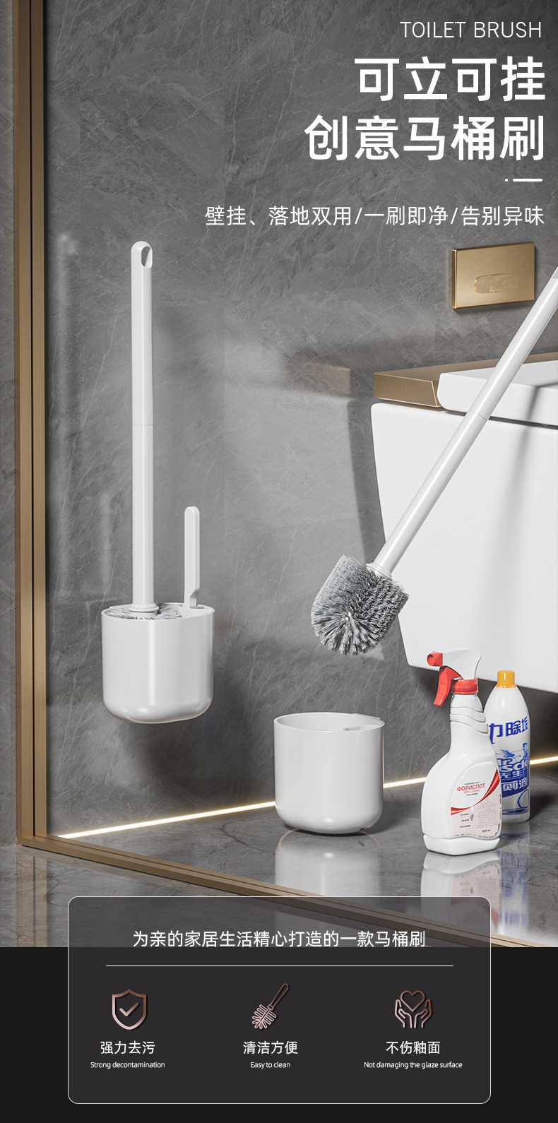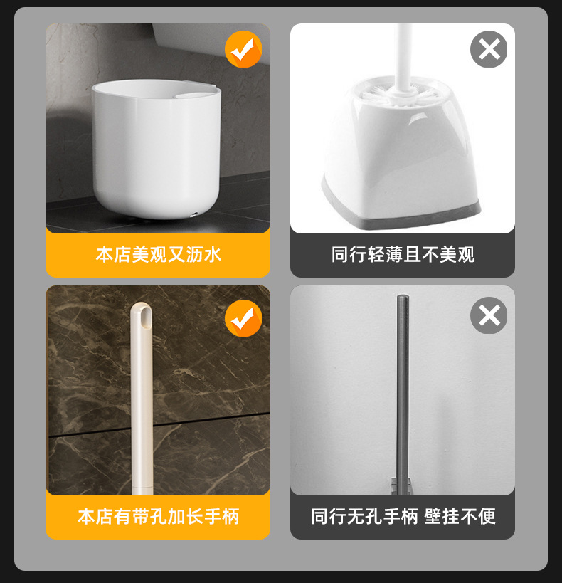 white round head connecting seat light handle toilet brush