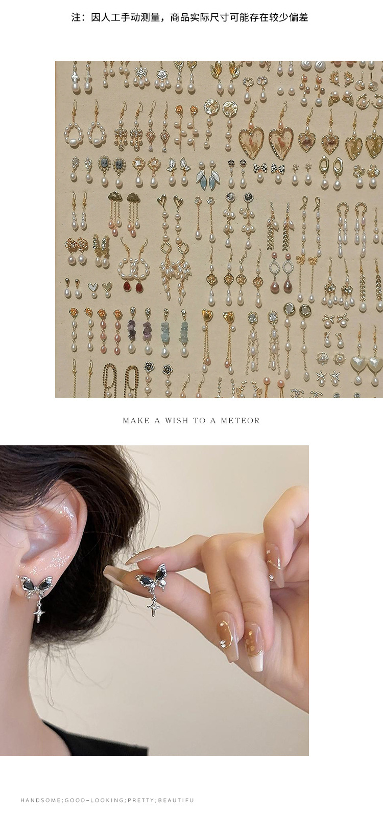40# silver needle-large and small pearls earrings