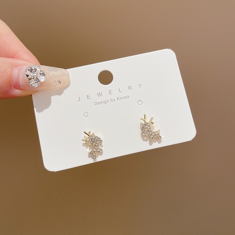 71# silver needle-deer rhinestone earrings