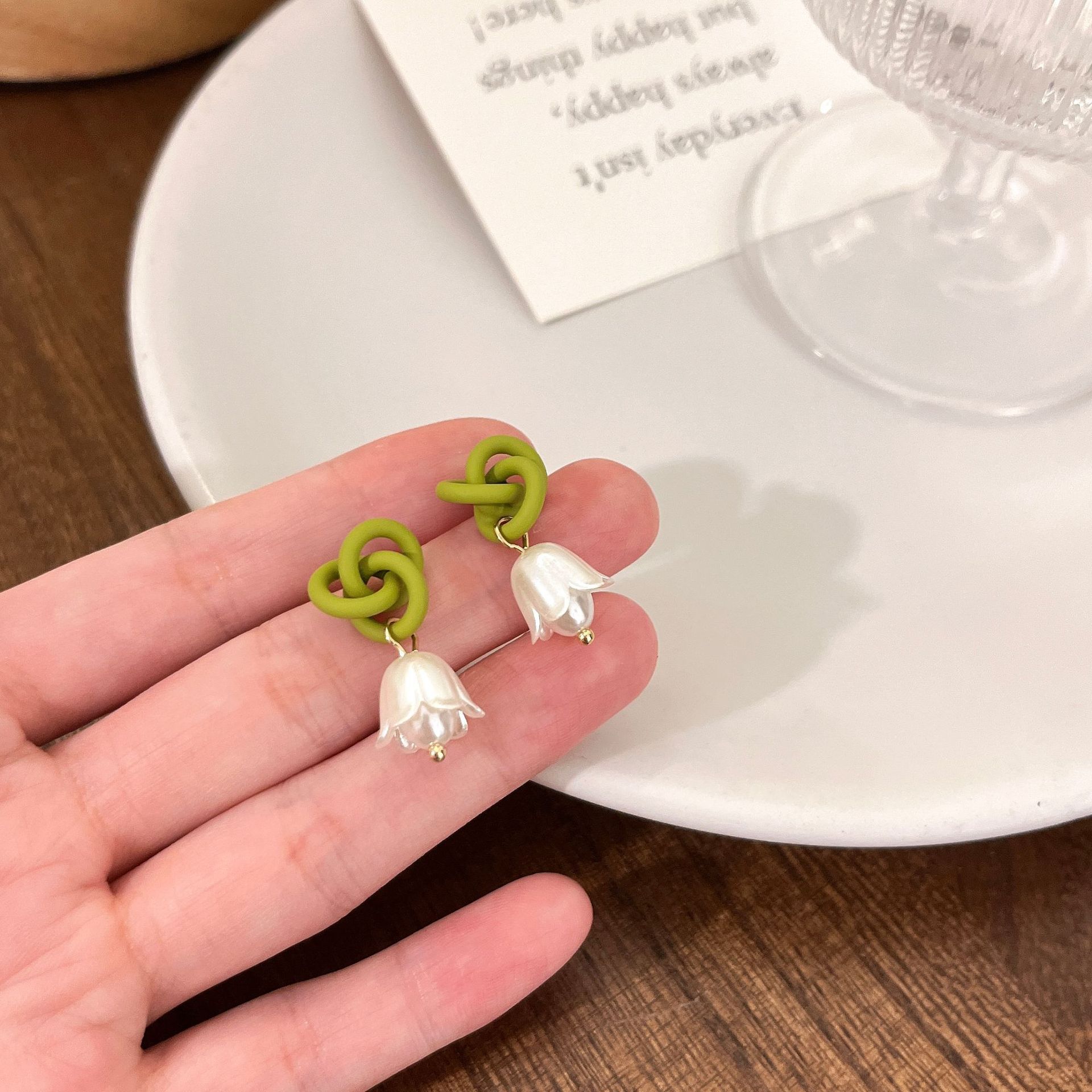 2# silver needle-green knot white flower